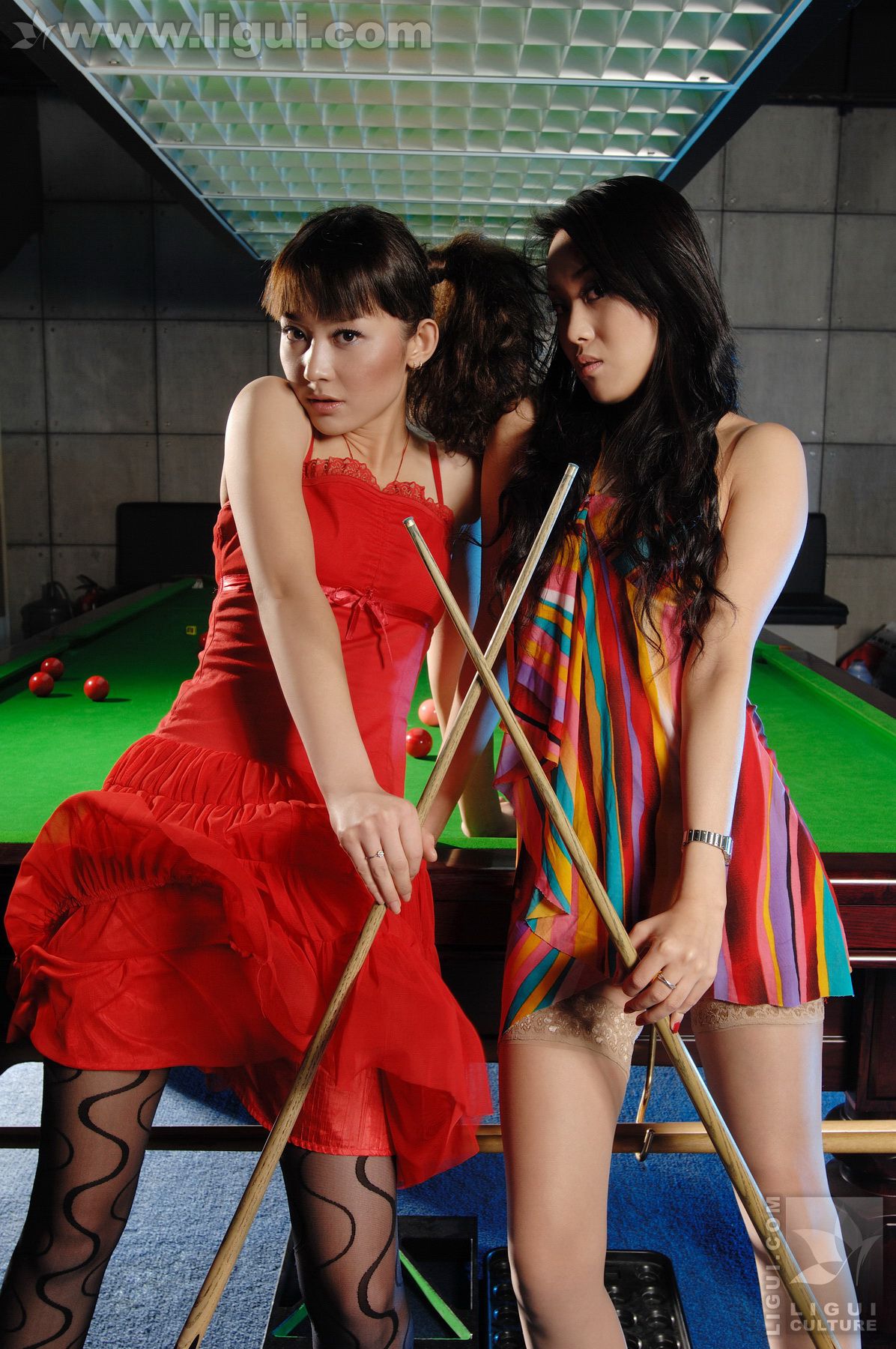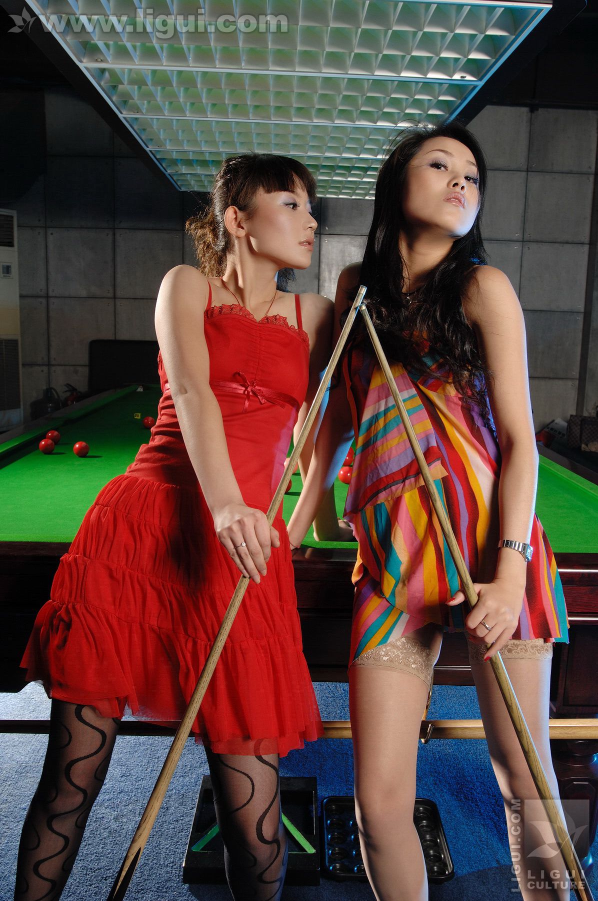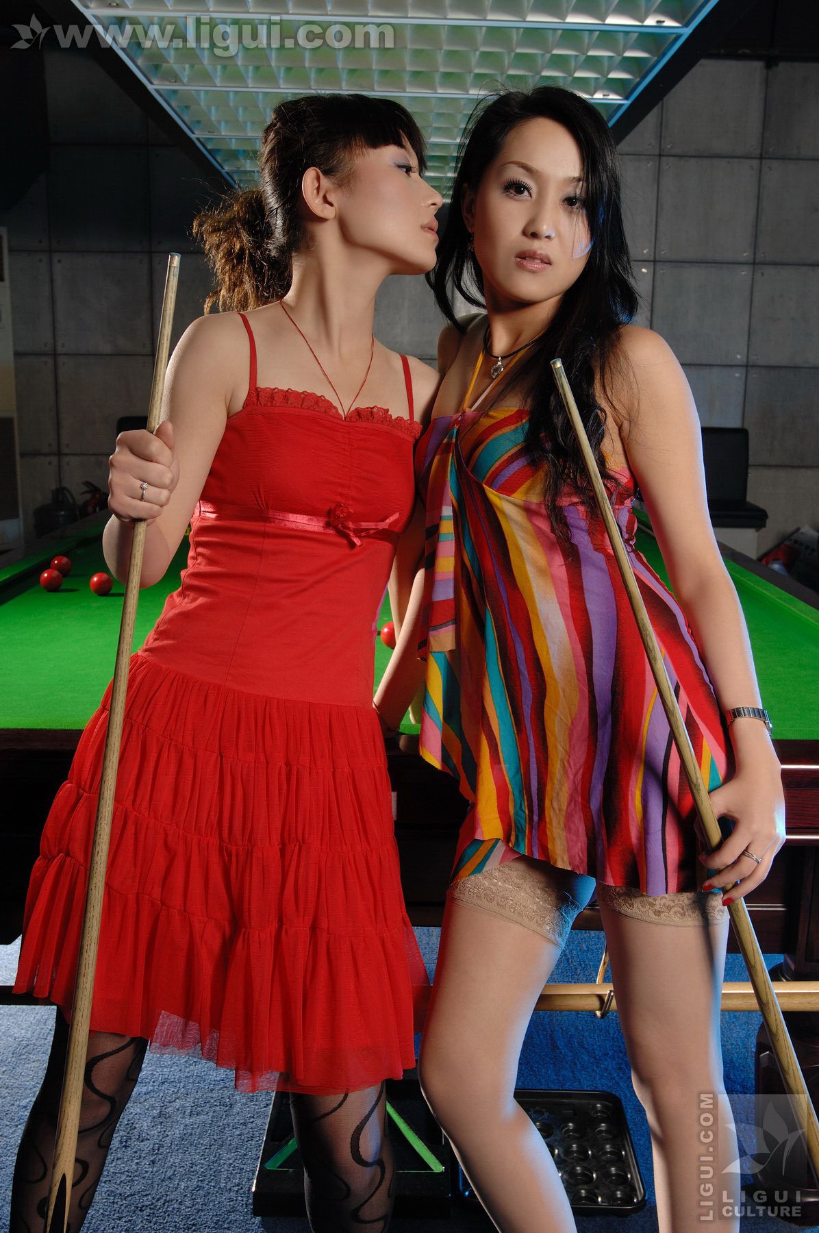 Model 咪惠美、琳达《丝袜美女玩台球》 [丽柜LiGui] 美腿玉足写真图片