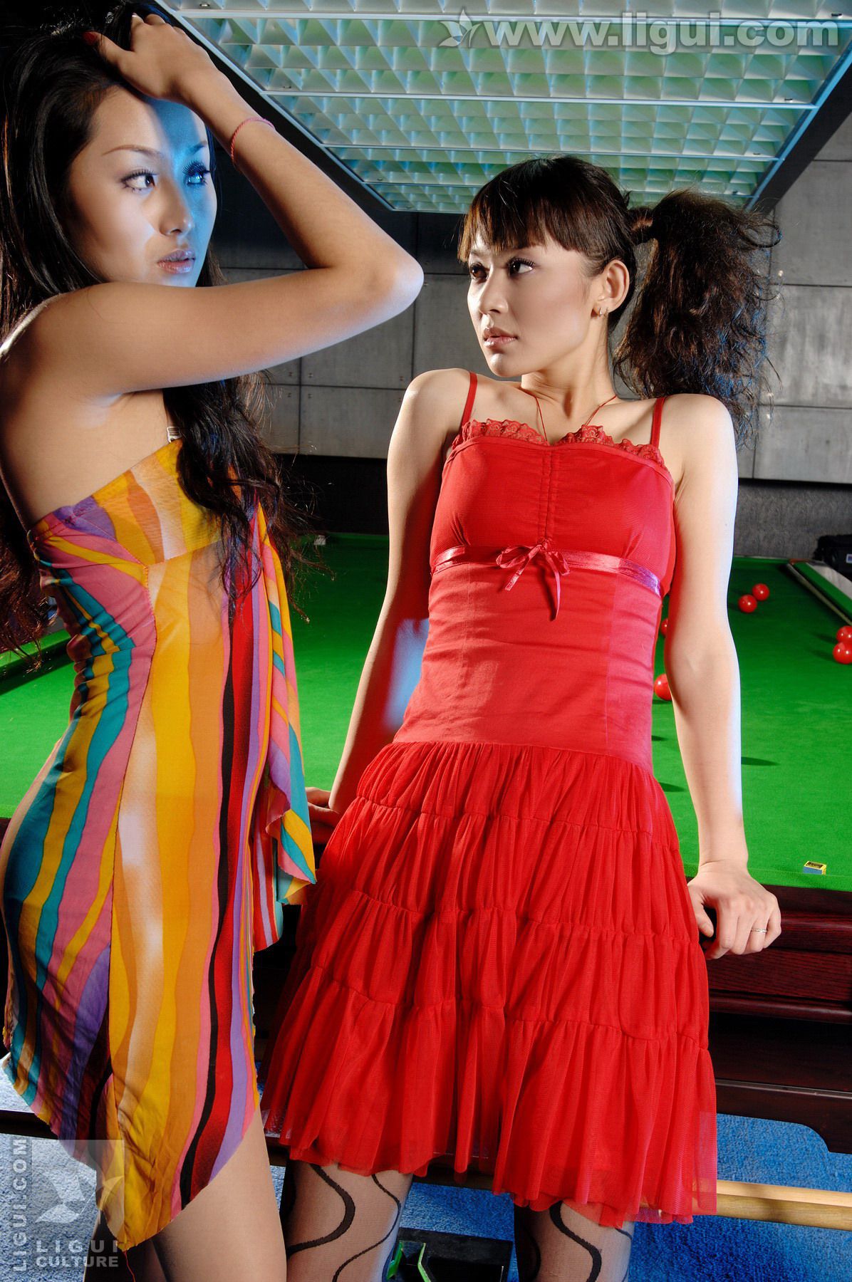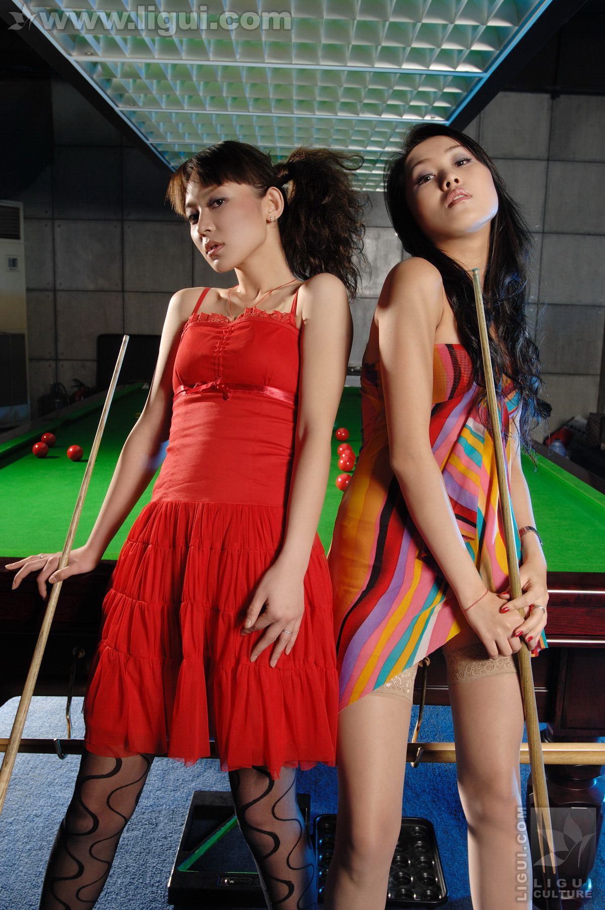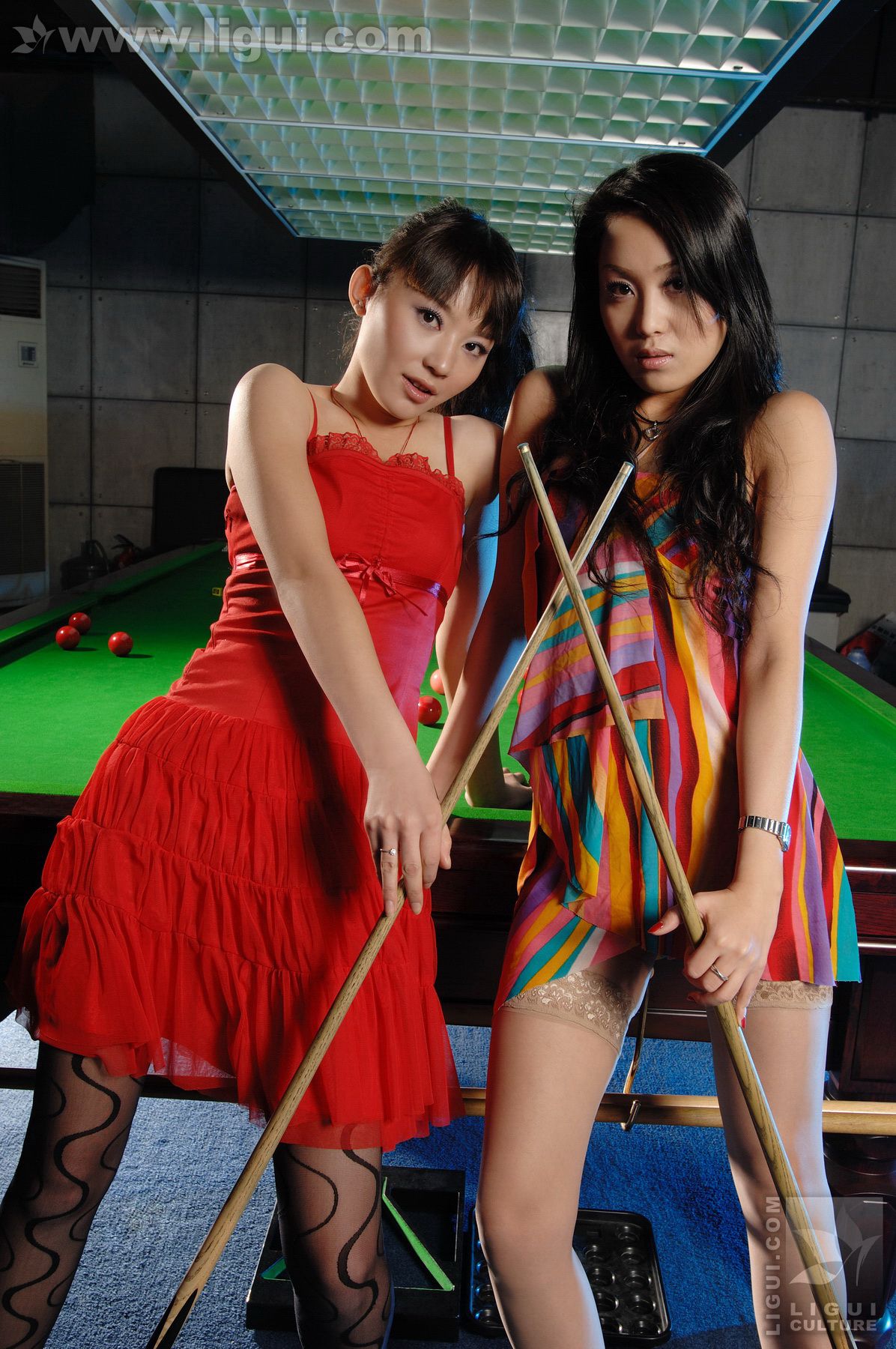 Model 咪惠美、琳达《丝袜美女玩台球》 [丽柜LiGui] 美腿玉足写真图片