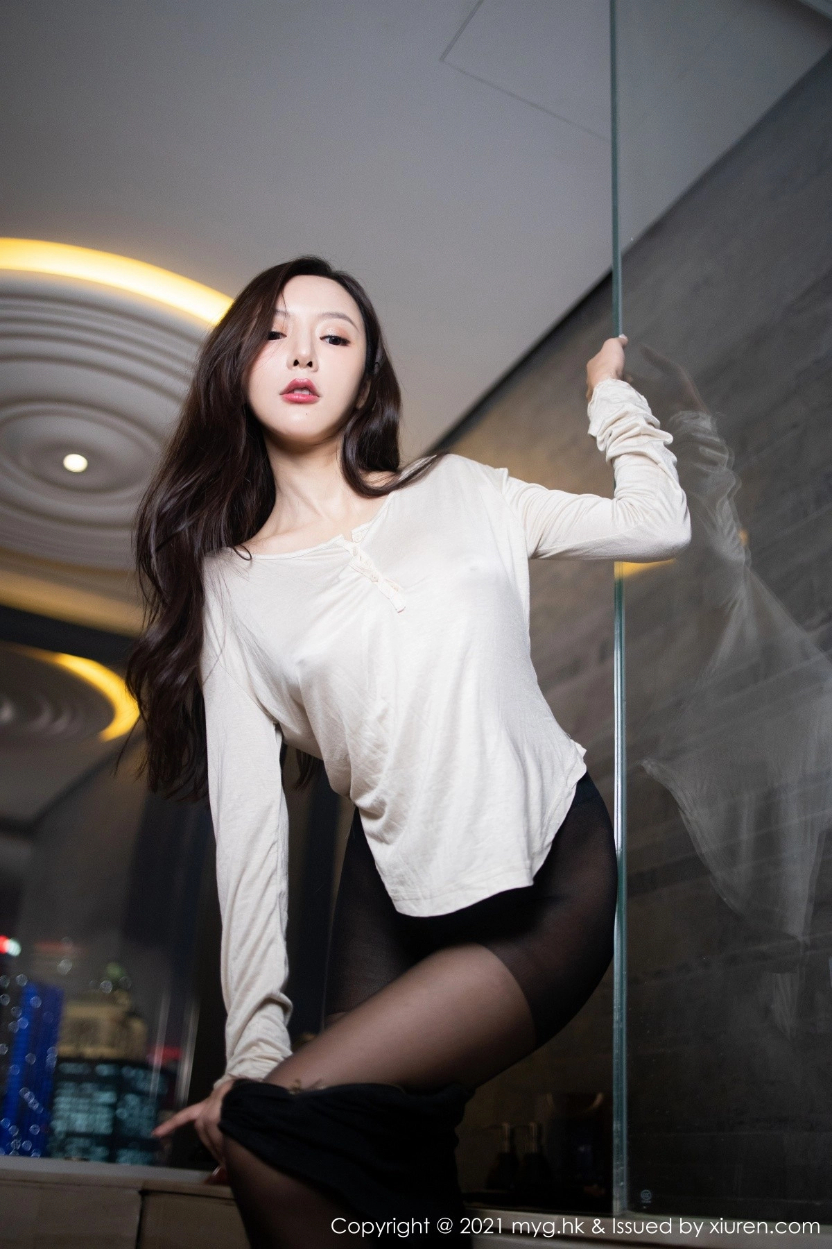 [MyGirl美媛馆]Vol.555 女神王馨瑶yanni江浙沪旅拍浴室低胸服饰配无内黑丝湿身诱惑写真73P