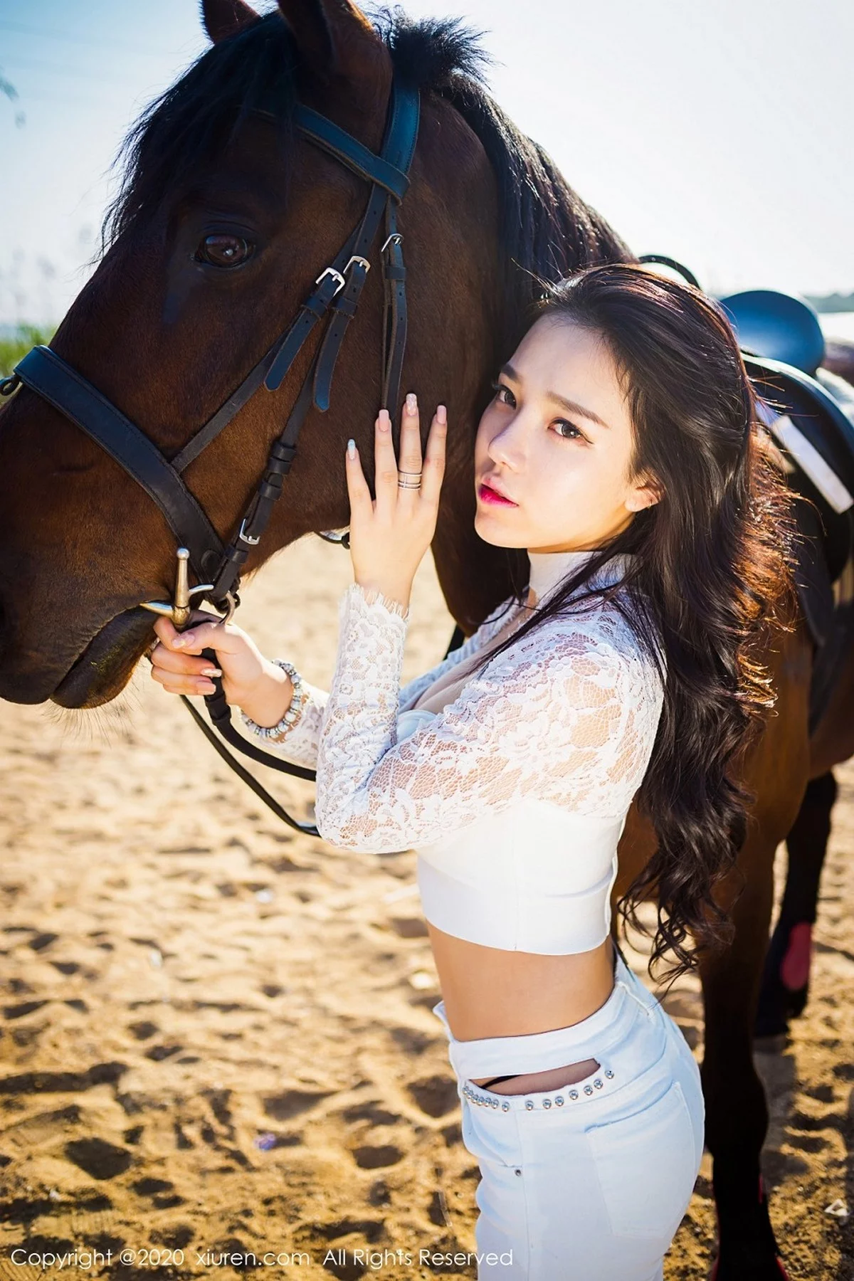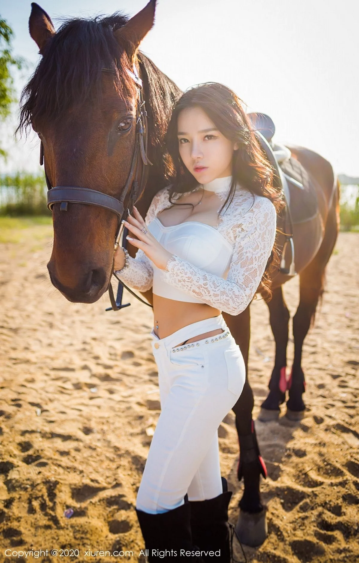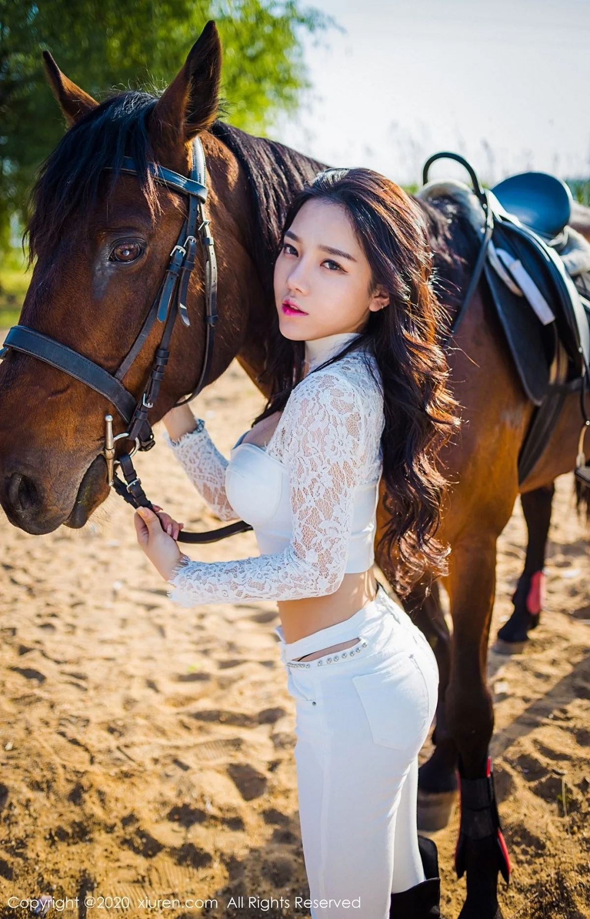 [XiuRen秀人网]No.2380 嫩模夏雪爱户外JK制服+白色缕空马术服秀完美身材性感写真41P