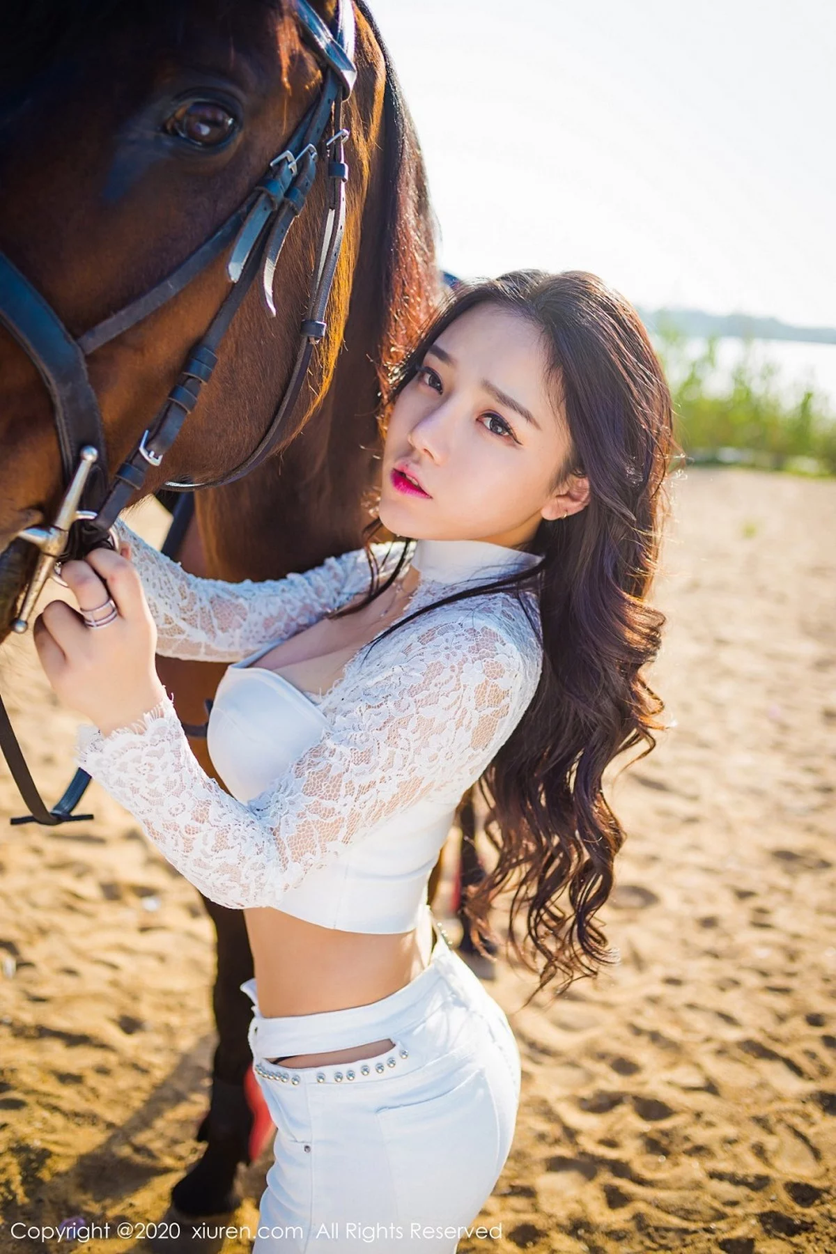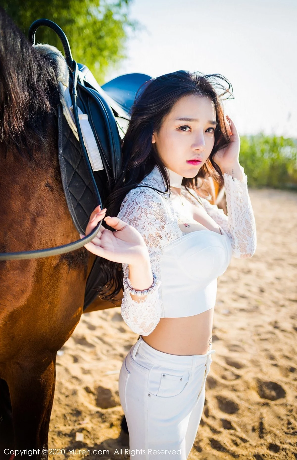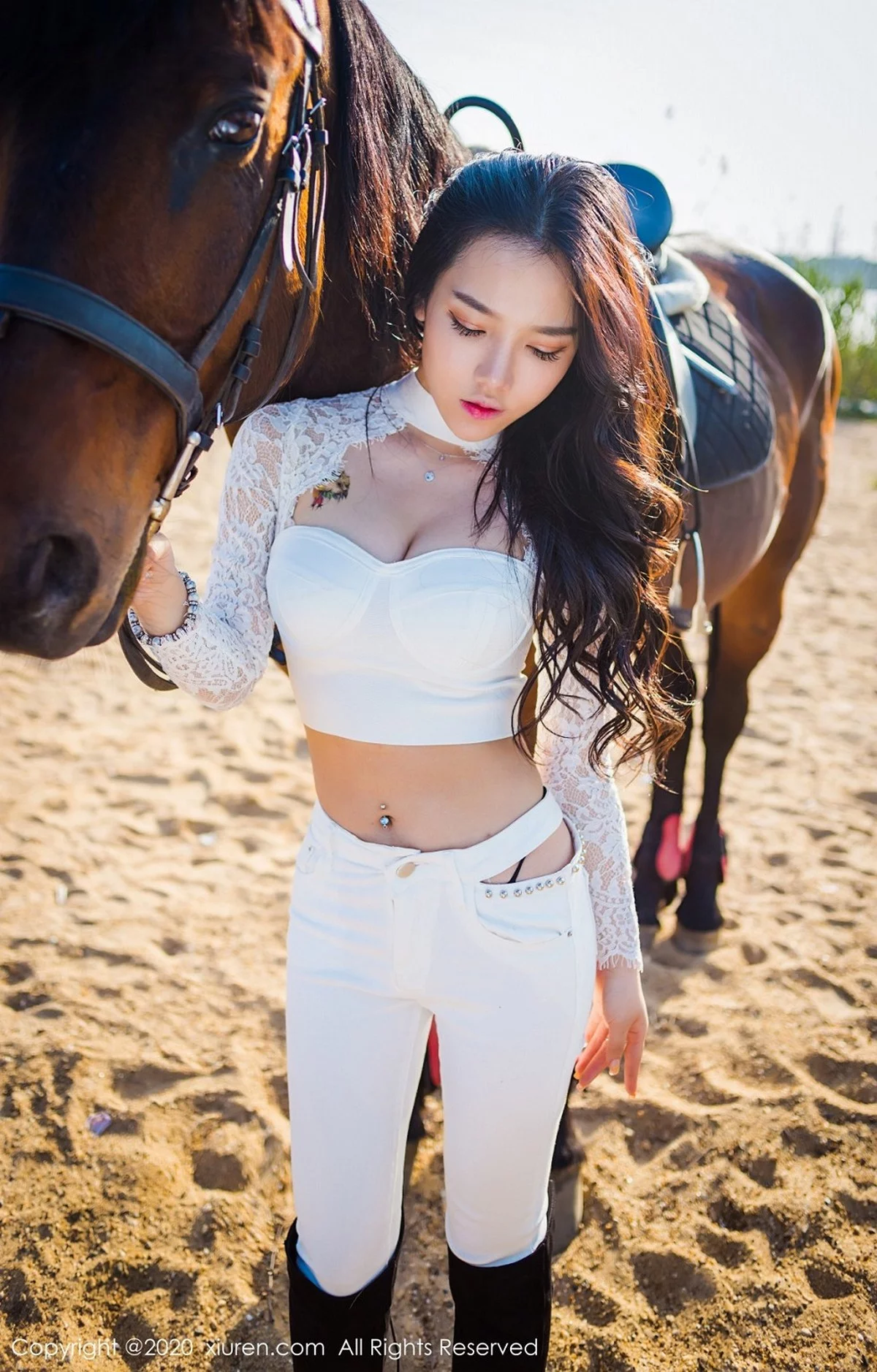 [XiuRen秀人网]No.2380 嫩模夏雪爱户外JK制服+白色缕空马术服秀完美身材性感写真41P