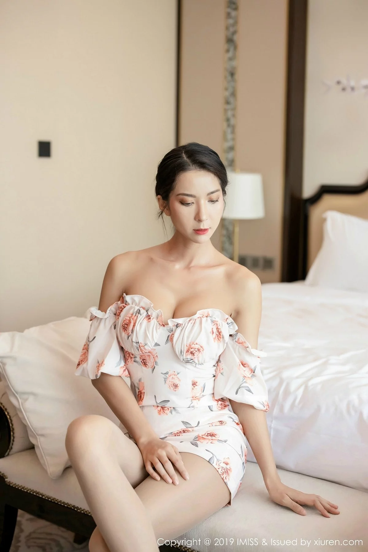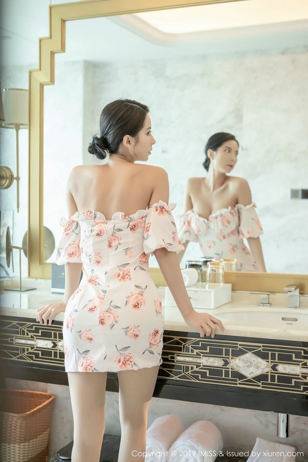 [IMISS爱蜜社]Vol.416 气质女神Carry花色连身裙配朦胧肉丝露性感粉色内衣诱惑写真48P