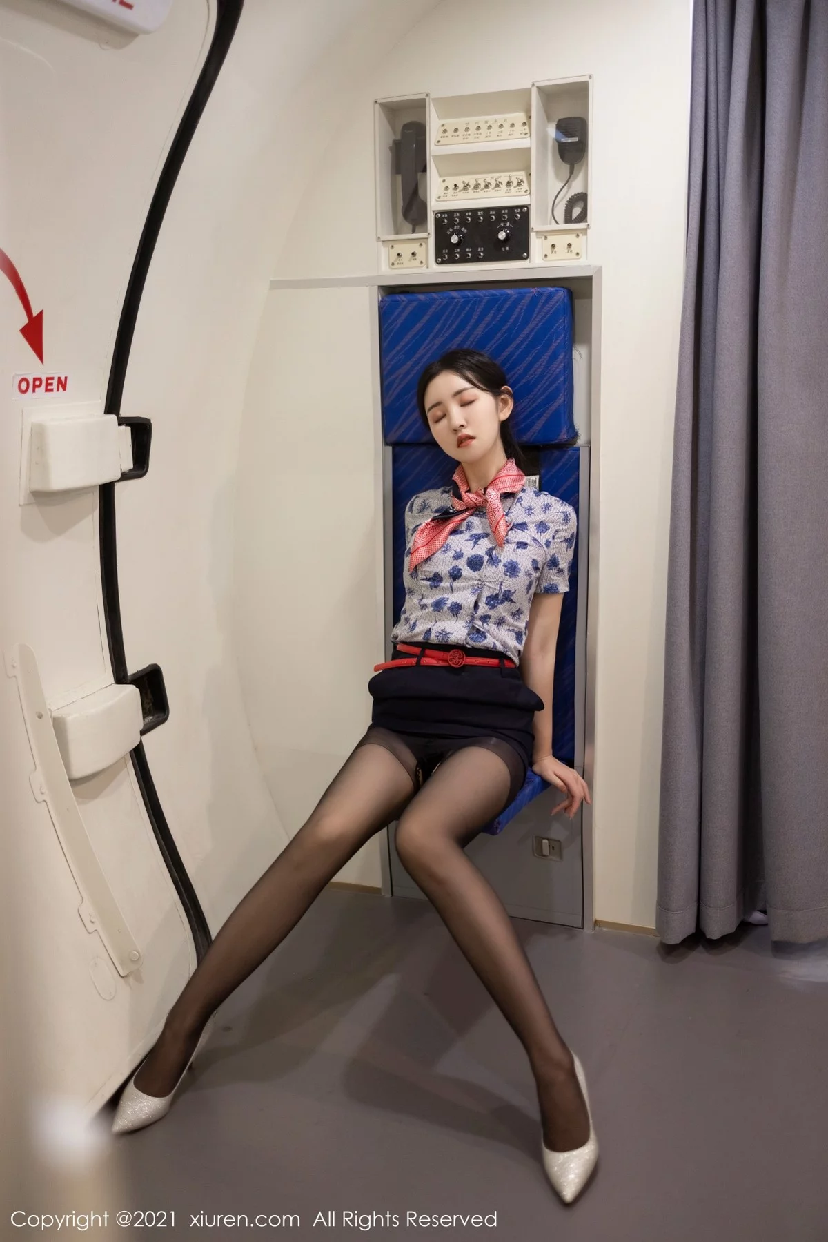 [XiuRen秀人网]No.3838 模特沈梦瑶客机空姐制服主题半脱露黑色内衣透视内裤诱惑写真58P