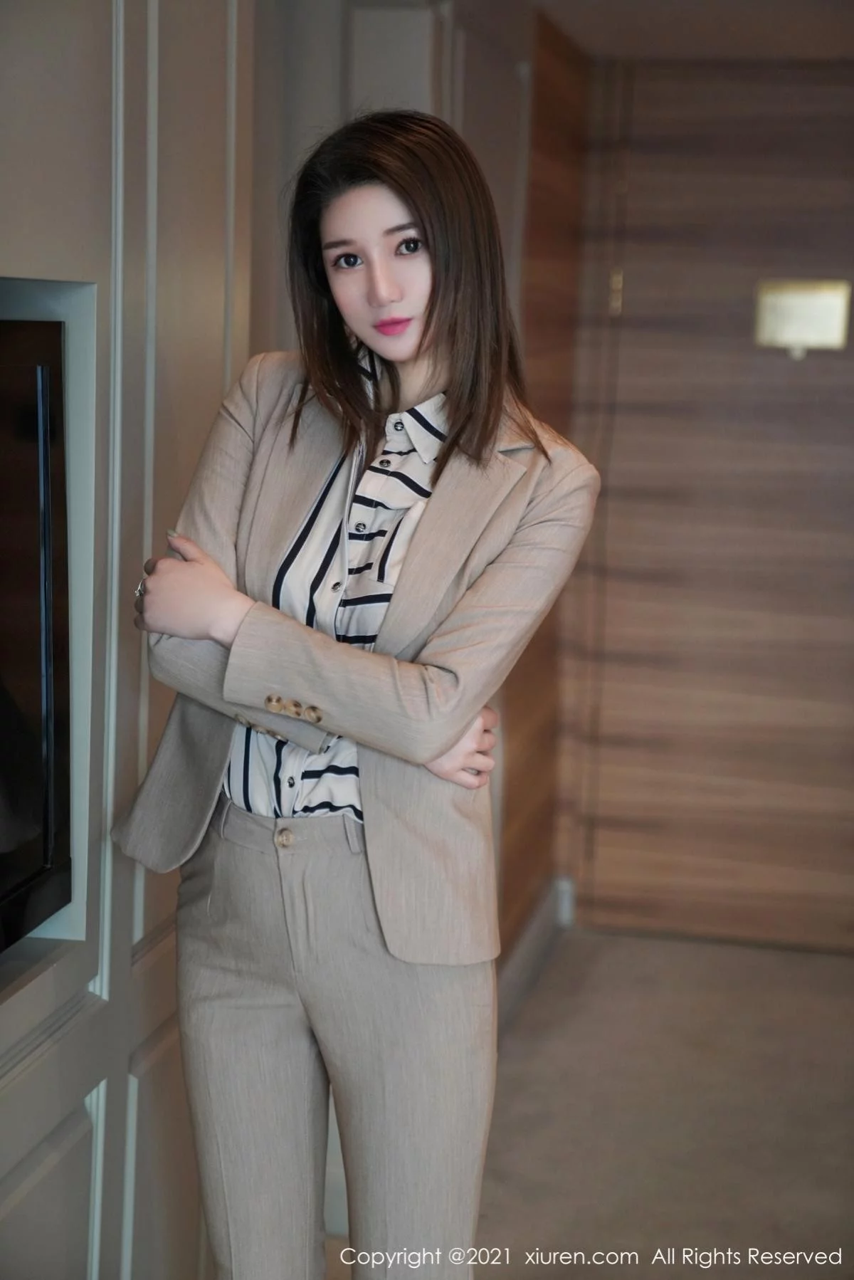 [XiuRen秀人网]No.3150 嫩模文芮jeninfer典雅职场OL主题半脱露开档黑丝裤袜秀翘臀诱惑写真58P