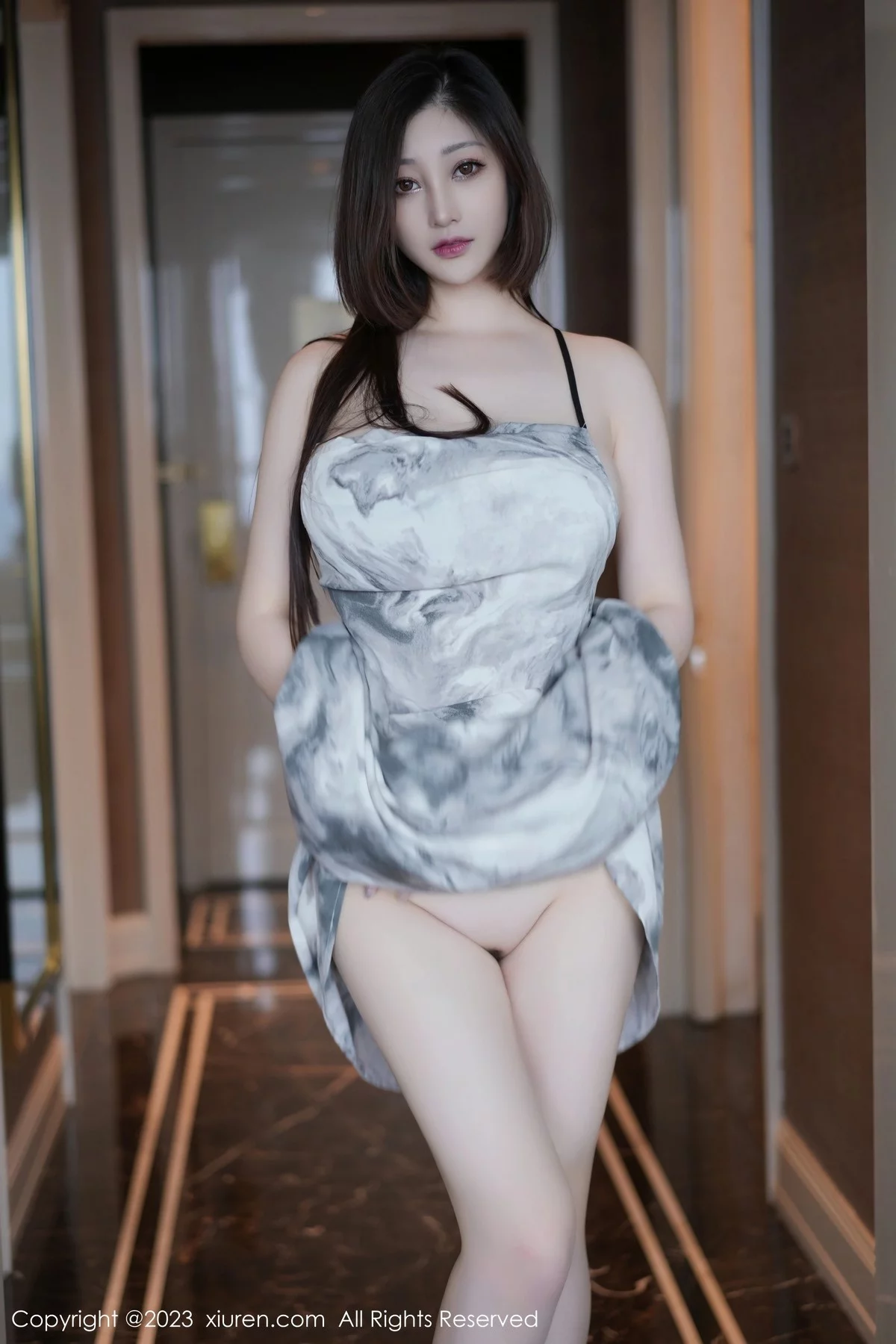 [XiuRen秀人网]No.6846 女神妲己 Toxic脱浅灰色吊带连衣长裙露雪峰美臀惹火诱惑写真64P