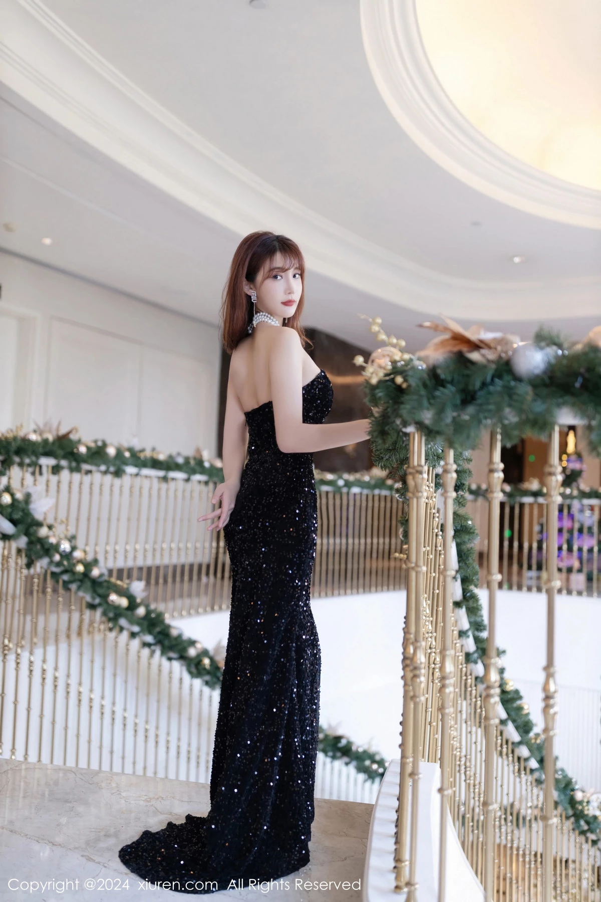 [XiuRen秀人网]No.7984 模特陆萱萱性感黑色露肩礼裙+链式情趣穿搭秀惹火身材诱惑写真80P