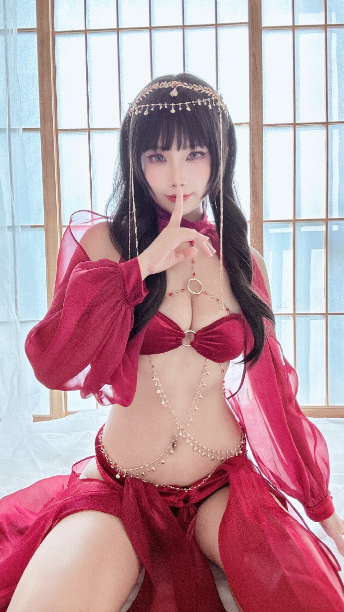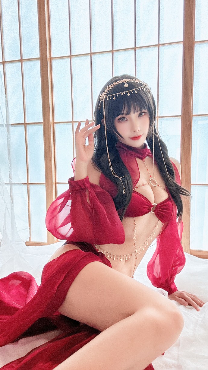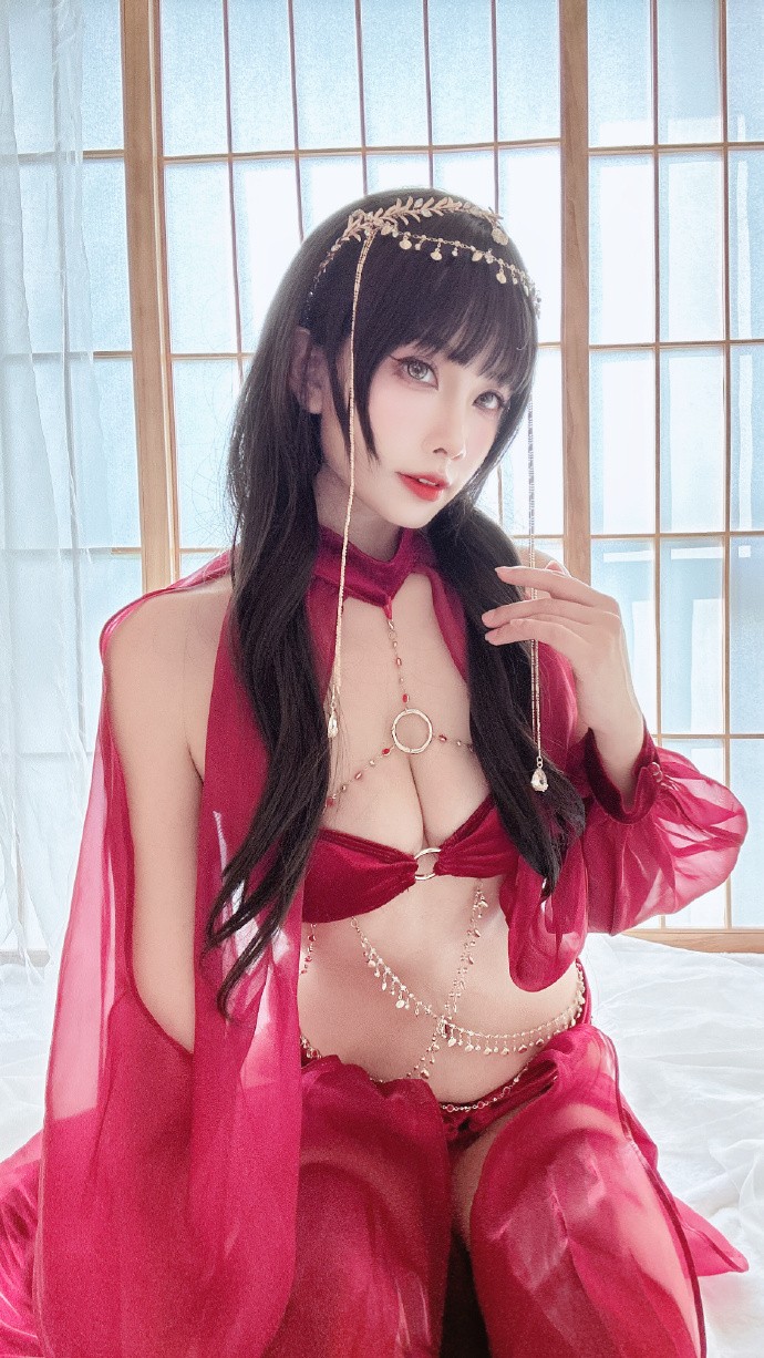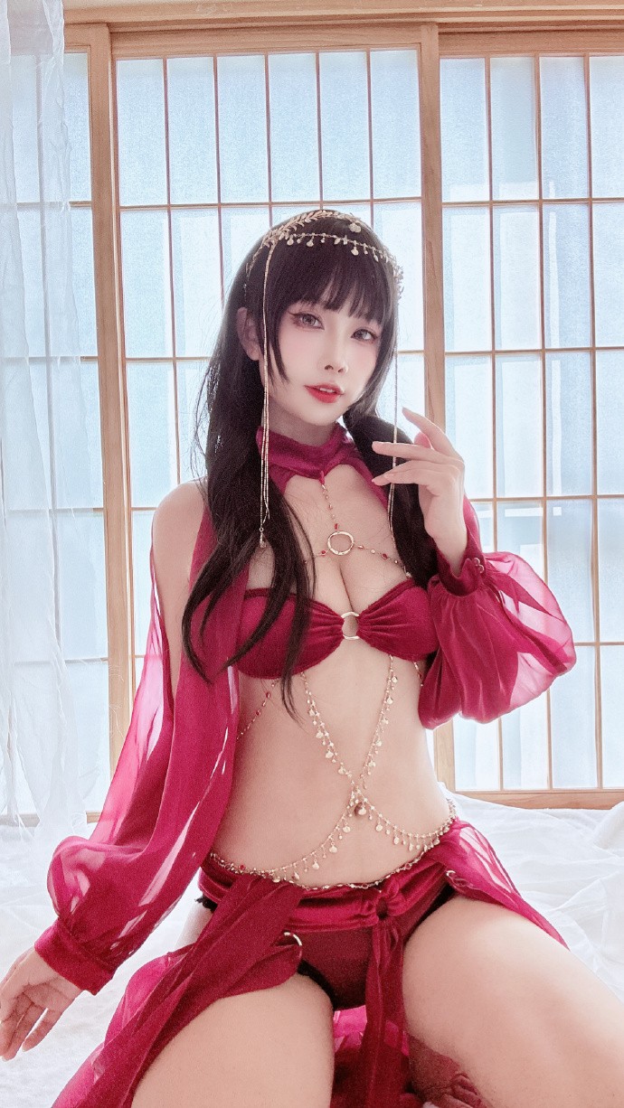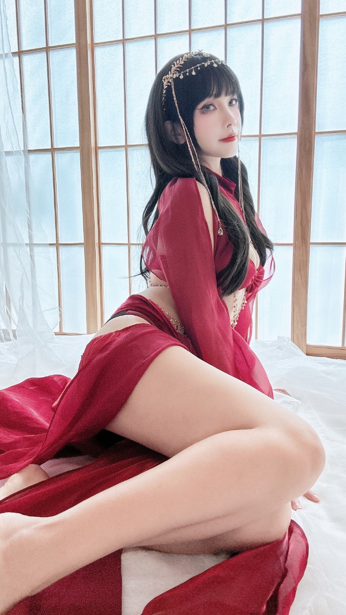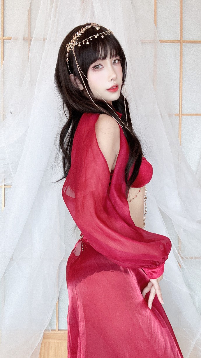 超好看的异域舞娘,酒红色太显白啦