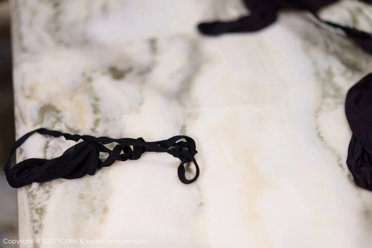 [YouMi尤蜜荟]Vol.894 女神Carol周妍希三亚旅拍黑色蕾丝薄纱内衣配黑丝吊袜诱惑写真110P