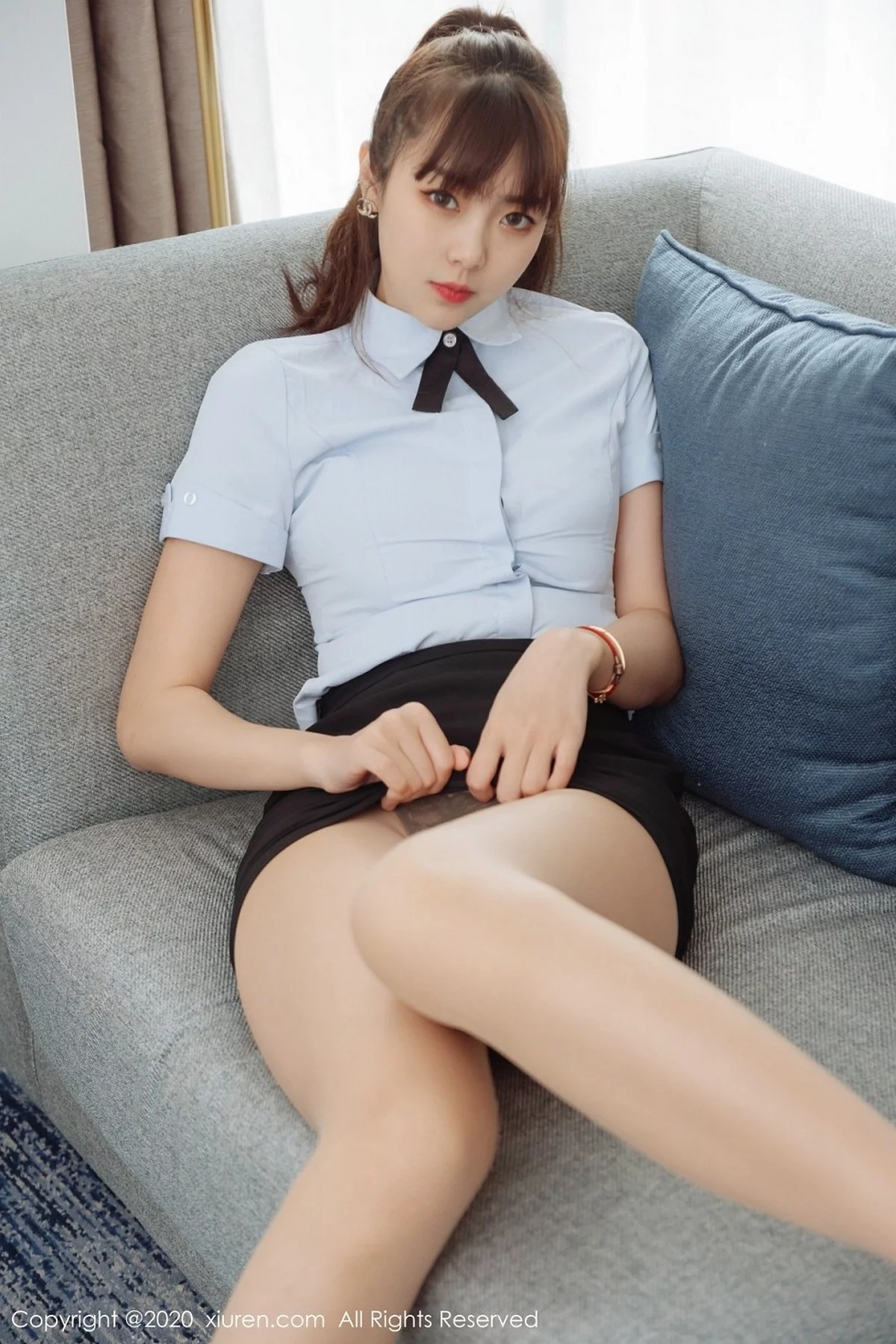 [XiuRen秀人网]No.2280 嫩模可乐Vicky私房黑短裙制服下无内肉丝裤袜秀美腿诱惑写真60P