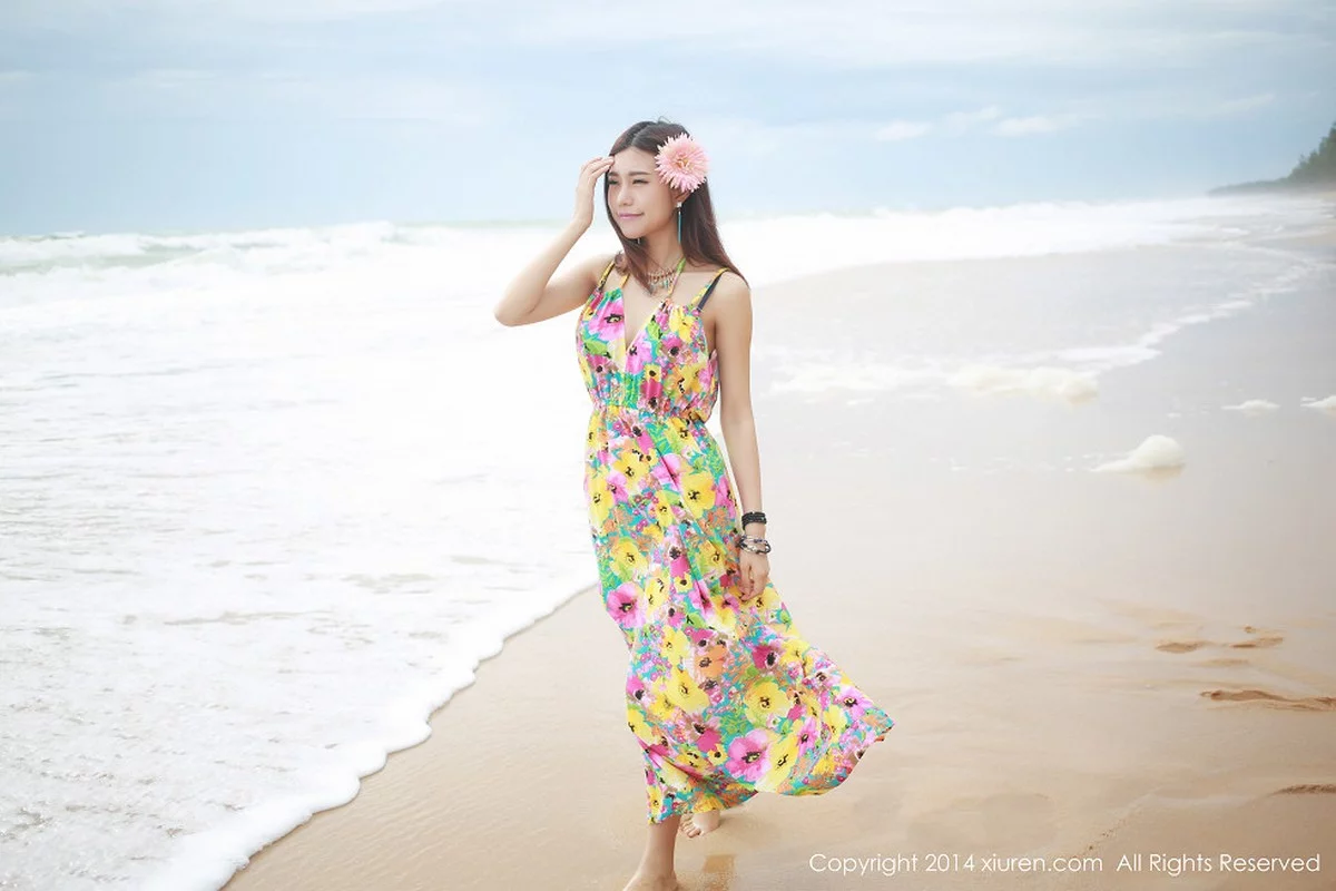 [XiuRen秀人网]No.200 花仙子美女绮里嘉ula花色连身裙海边撩人风情性感写真69P