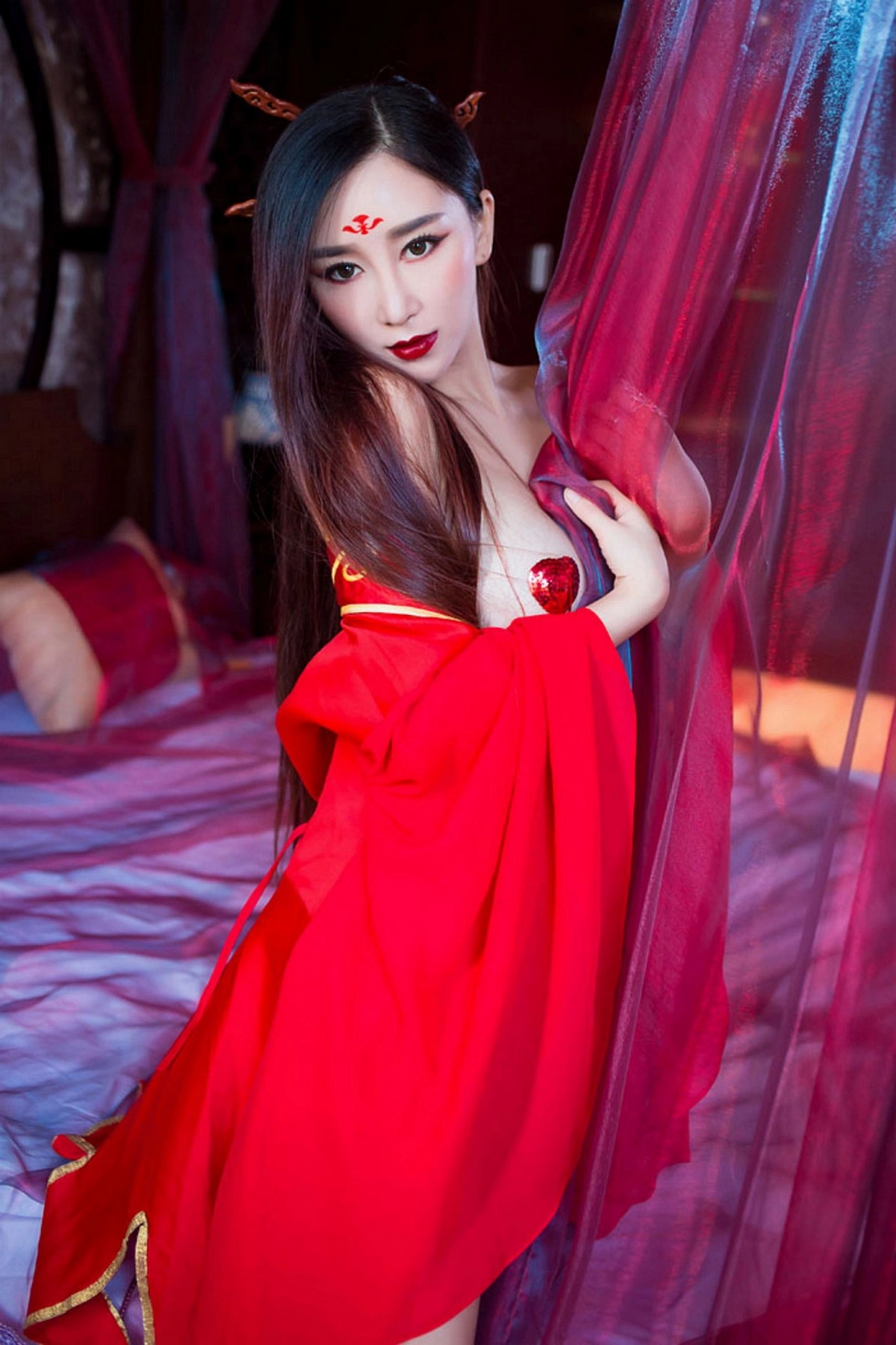 [XiuRen秀人网]No.382 嫩模邹晶晶《花千骨魔化》COS七夕福利红色小内裤诱惑写真57P