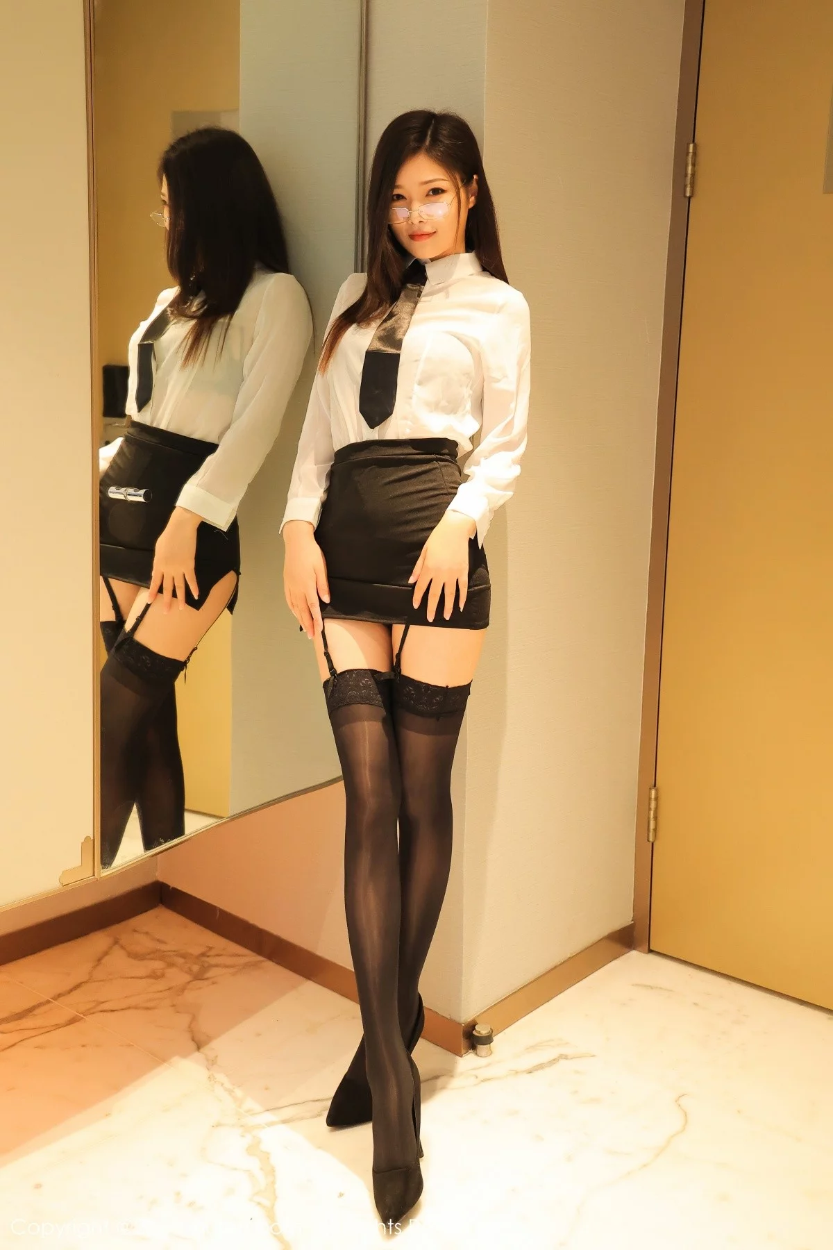 [XiuRen秀人网]No.4324 模特星萌私房经典白衬衣黑短裙配黑丝吊袜秀完美身材诱惑写真49P