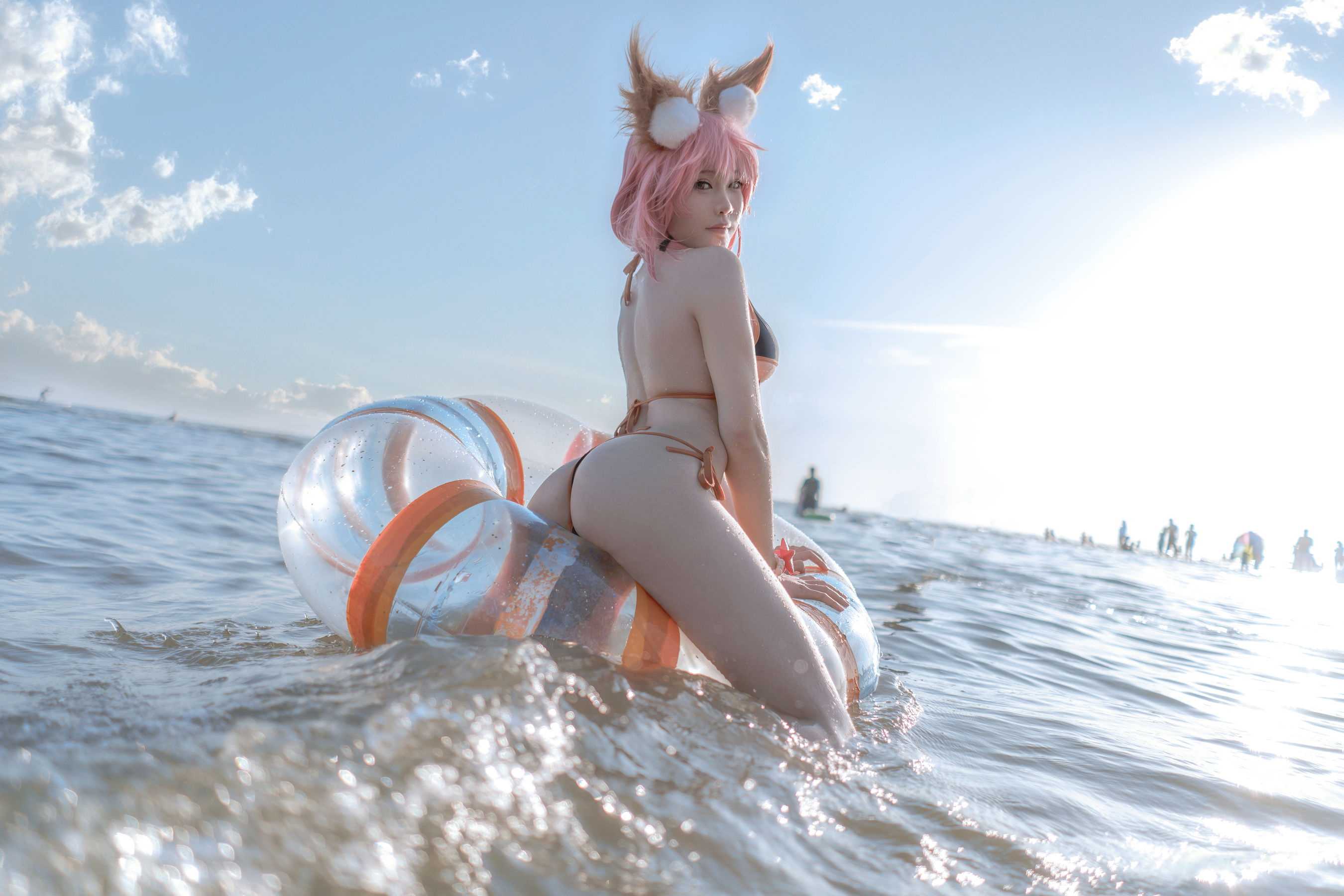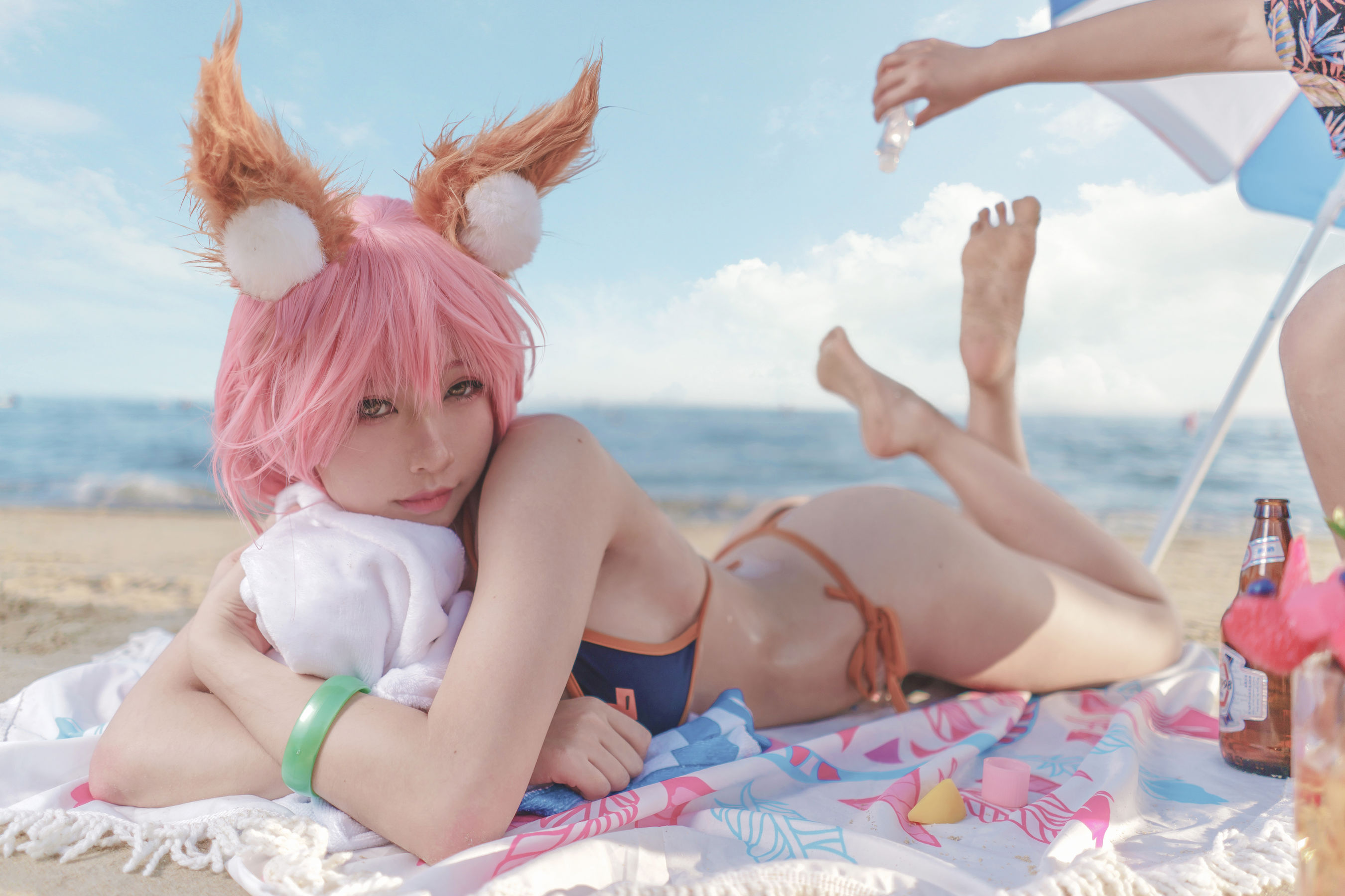[网红COSER写真] 动漫博主uki雨季 – 玉藻前海边泳装