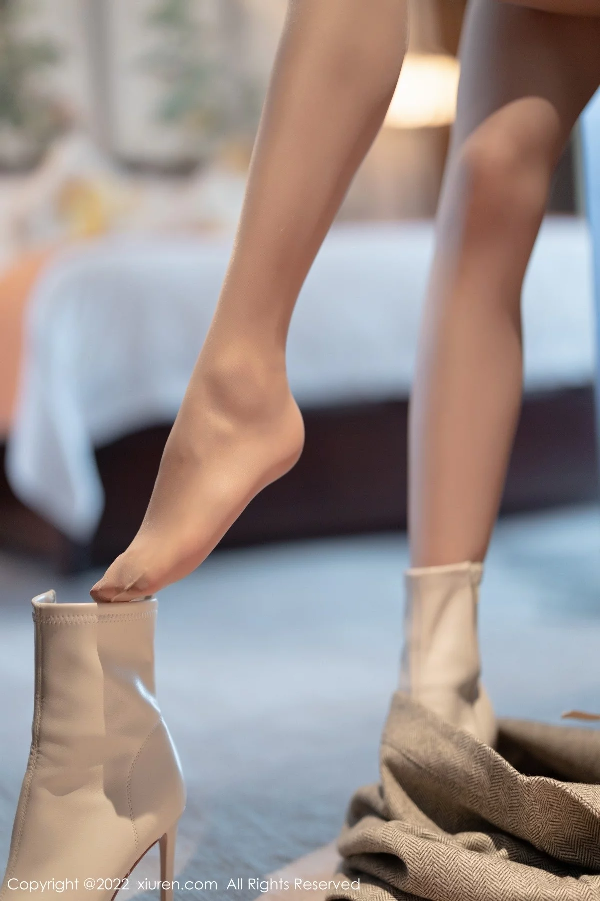 [XiuRen秀人网]No.4474 女神芝芝Booty白色收身上衣配灰短裙露超薄肉丝秀翘臀诱惑写真97P