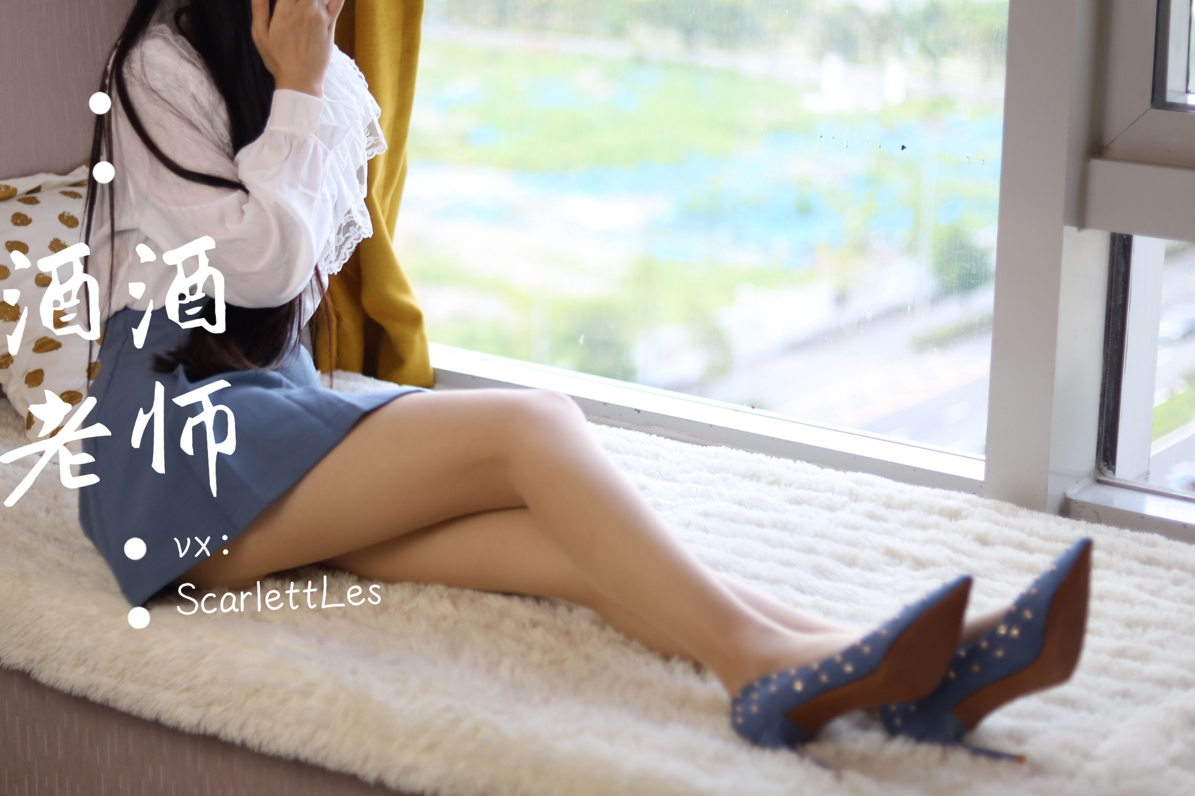 [网红COS] 酒酒老师 – 蓝色短裙白丝少女风