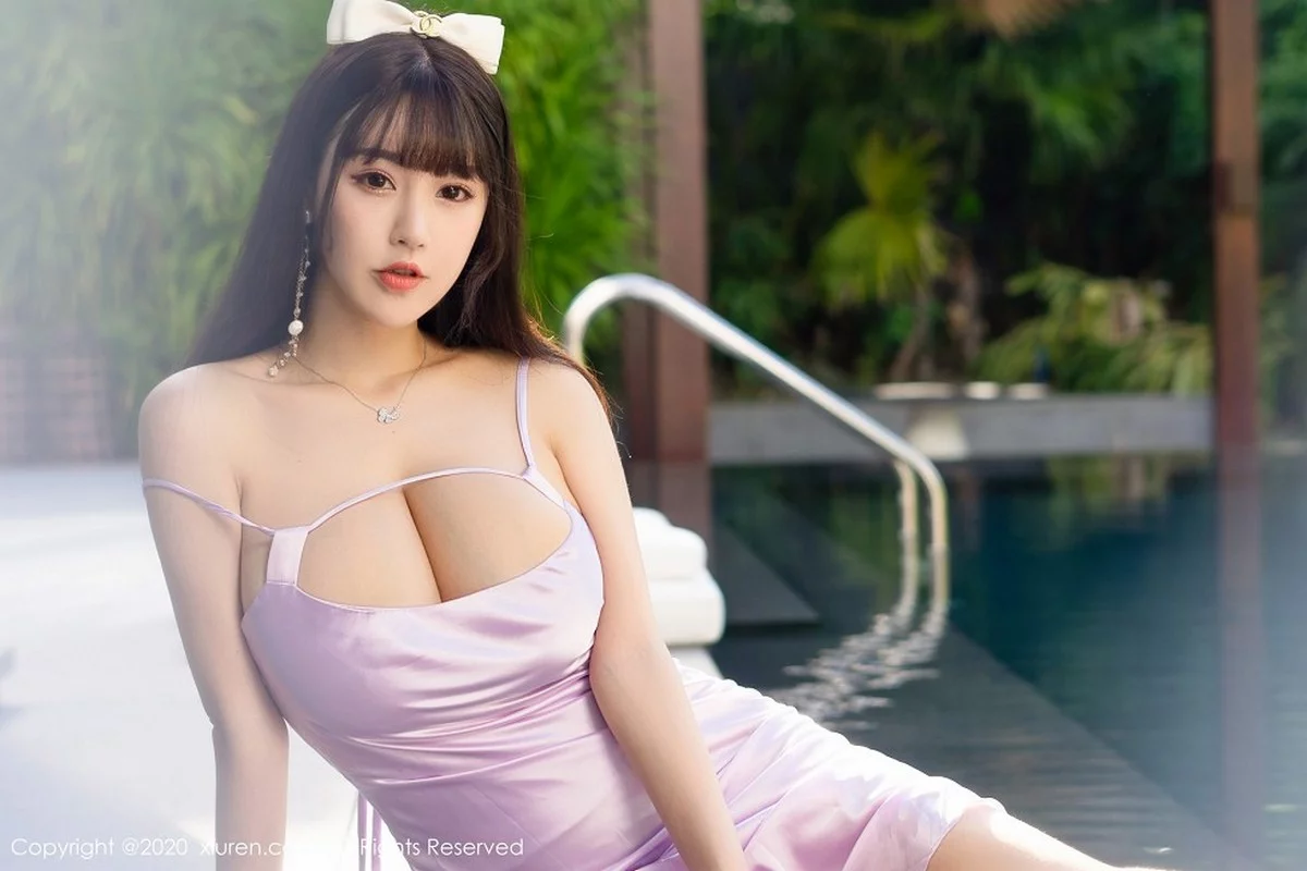 [XiuRen秀人网]No.2353 女神朱可儿Flower三亚旅拍泳池紫色典雅礼裙湿身秀豪乳诱惑写真48P