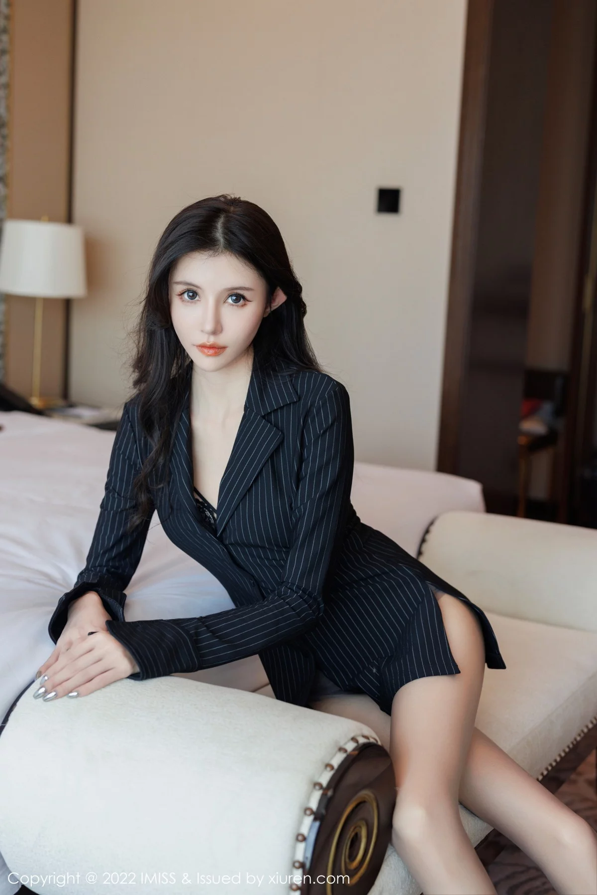 [IMISS爱蜜社]Vol.707 新人模特泥鳅鳅脱深色外衣露黑色蕾丝内衣配超薄黑丝诱惑写真50P