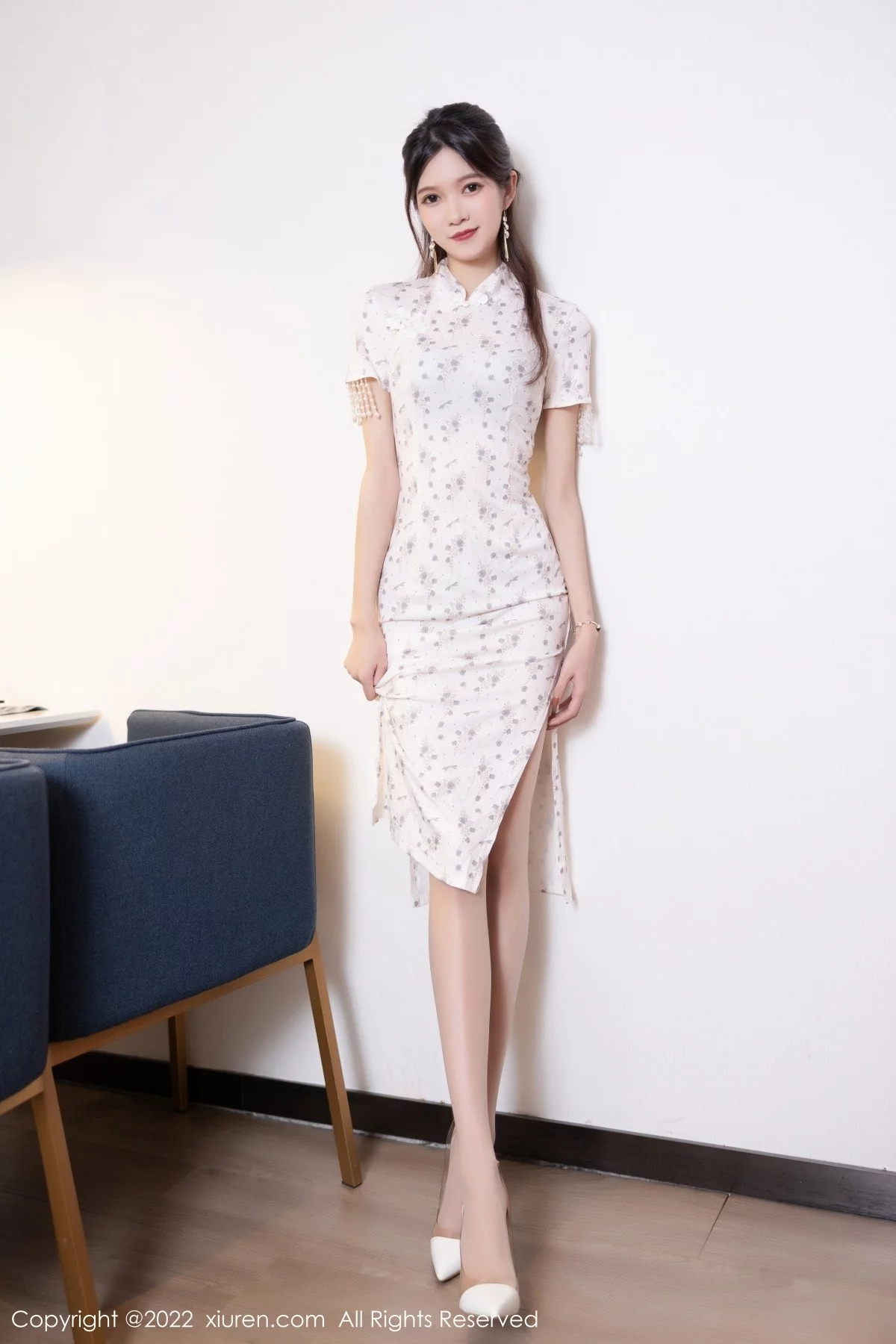 [XiuRen秀人网]No.5592 模特程开心脱性感米色图案旗袍露灰色内衣配超薄肉丝诱惑写真76P