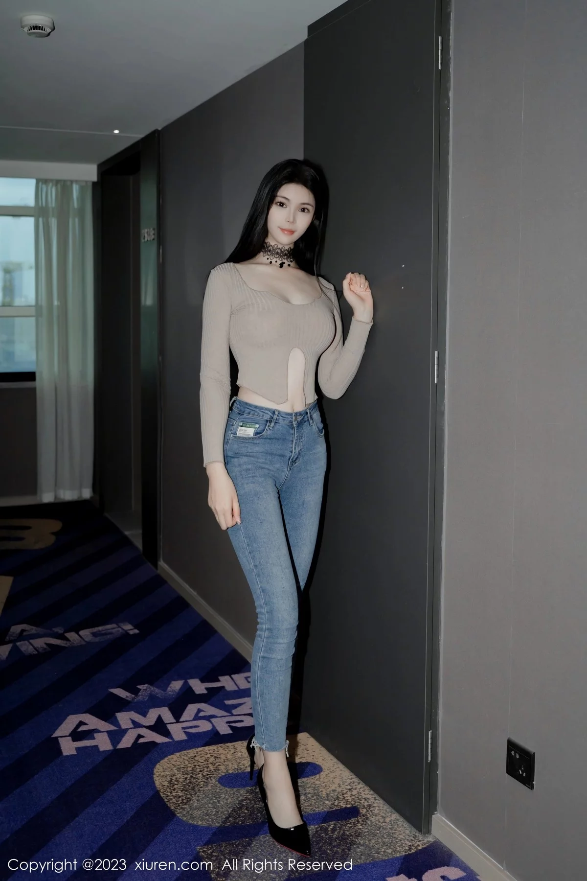 [XiuRen秀人网]No.6636 模特雪糕CiCi性感浅色衣配牛仔裤半脱露丁字裤秀翘臀诱惑写真51P