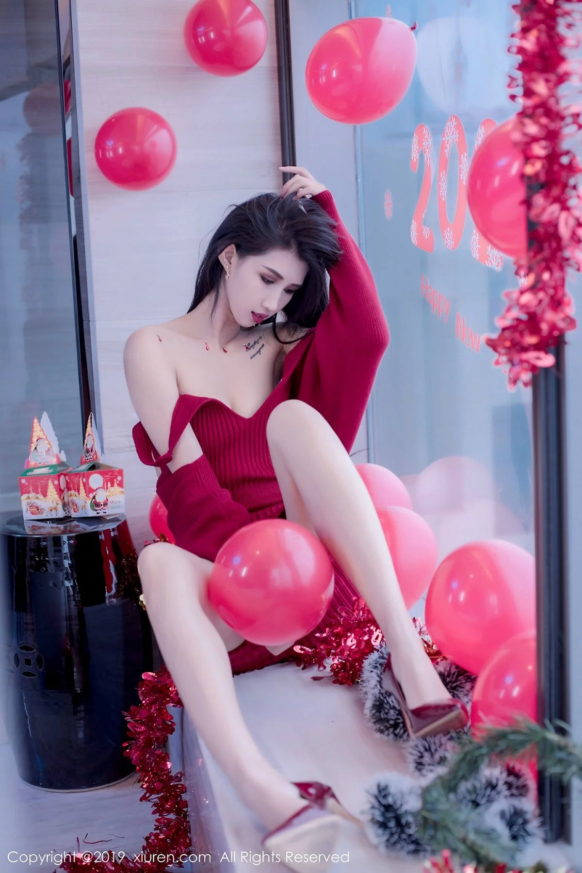 [XiuRen秀人网]No.1871 高挑美女葛征Model私房圣诞新年主题红色深V圣诞女郎诱惑写真81P