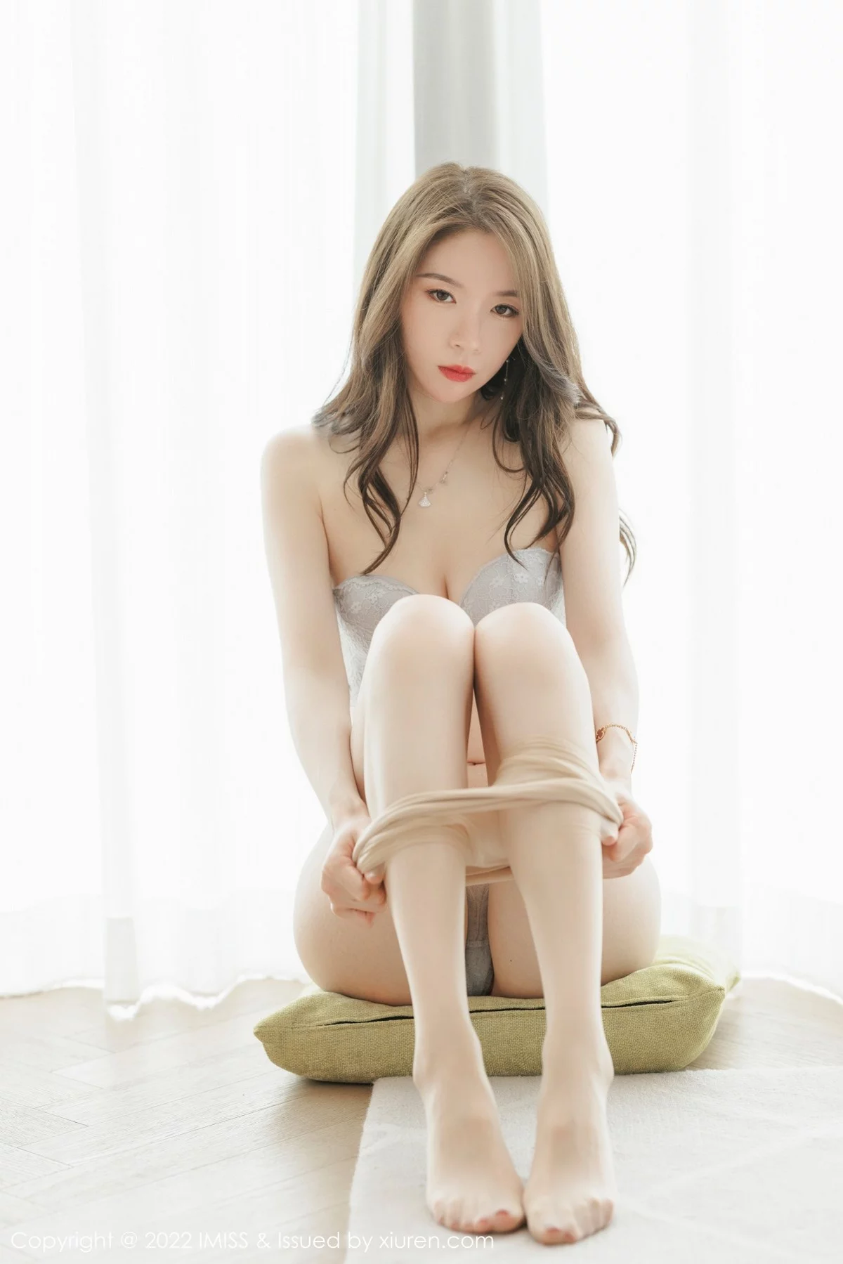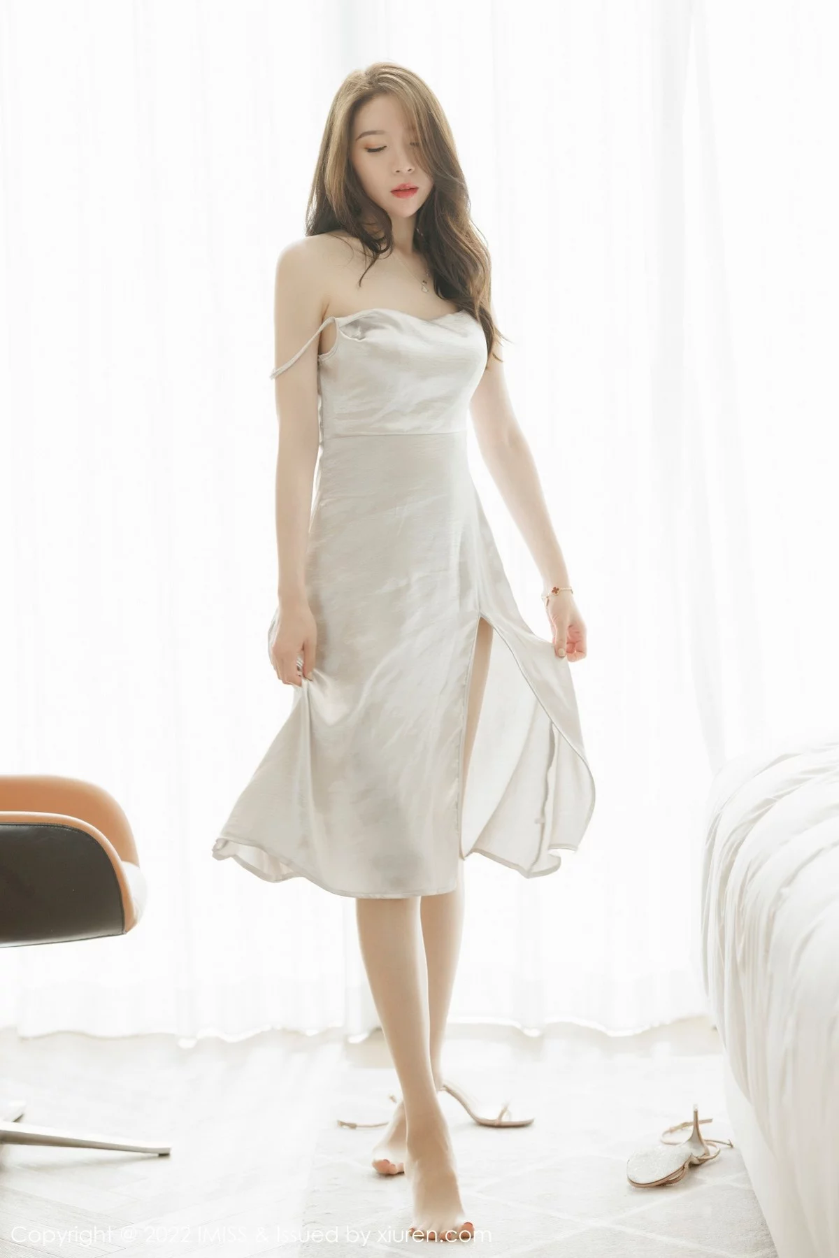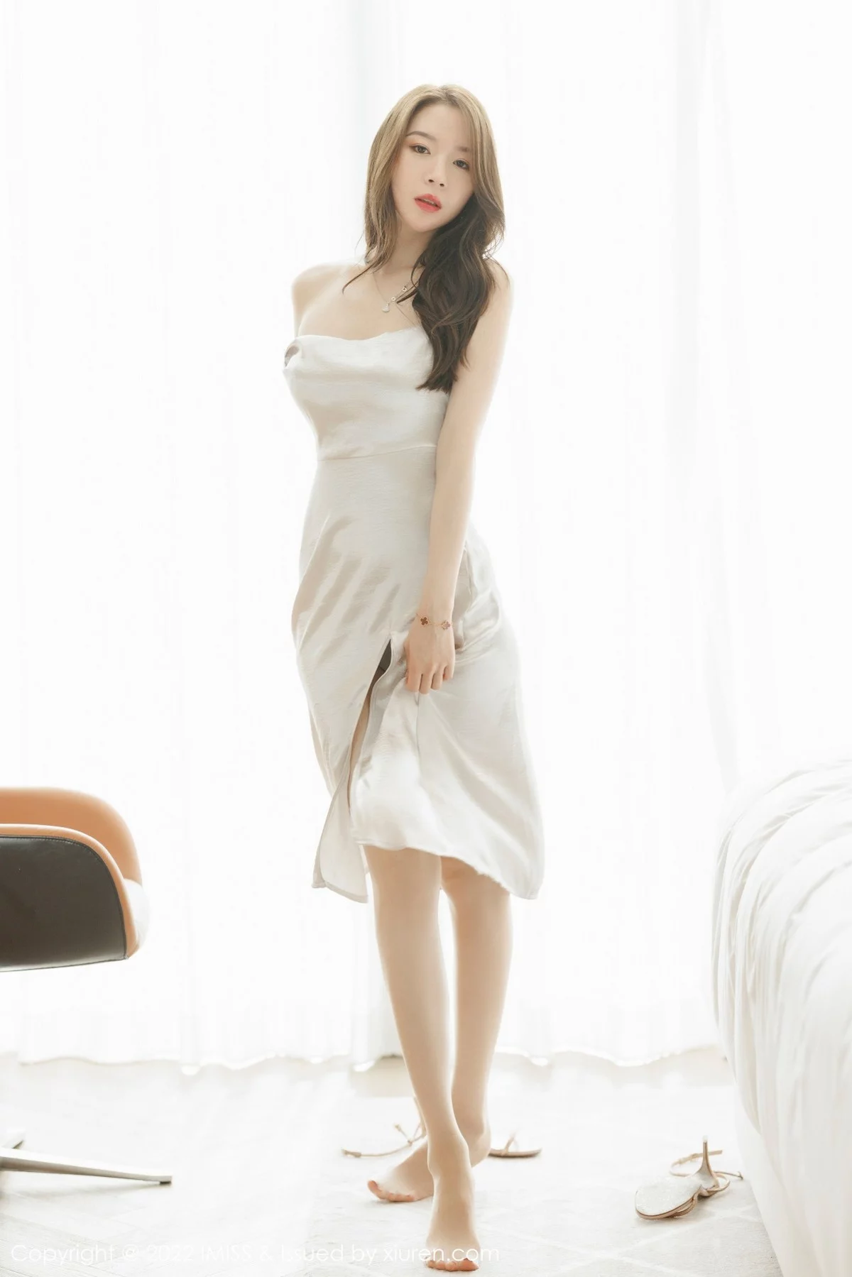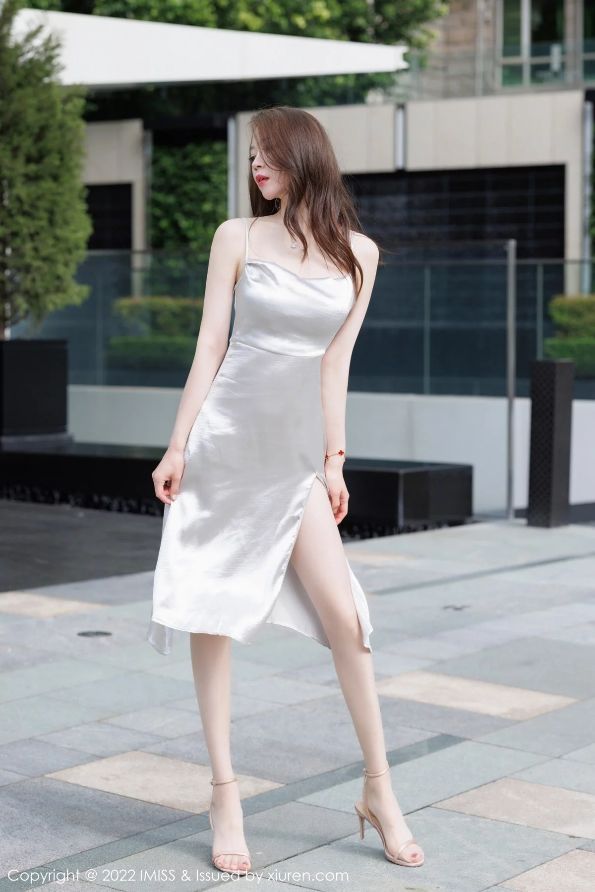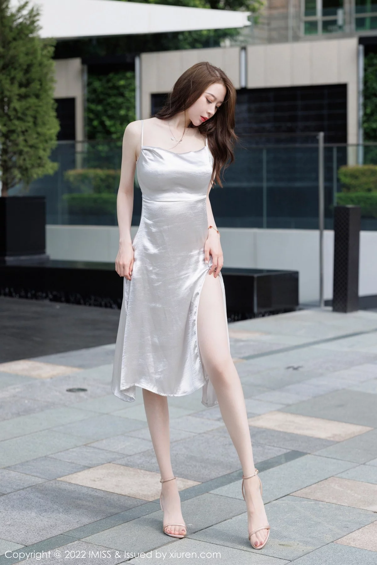 [IMISS爱蜜社]Vol.650 模特梦心月广东心愿旅拍脱闪亮银白吊裙露性感内衣迷人诱惑写真67P
