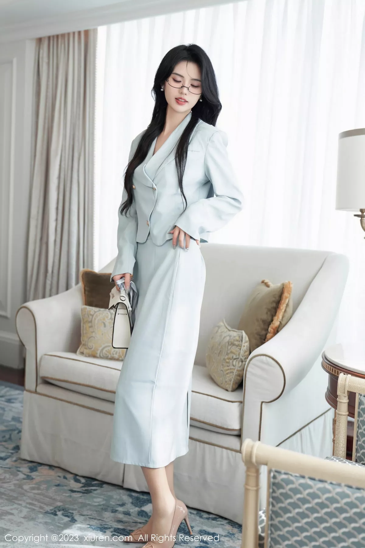 [XiuRen秀人网]No.7709 模特梦心玥浅灰色套装露浅色内衣配开档肉丝秀曼妙身姿诱惑写真88P