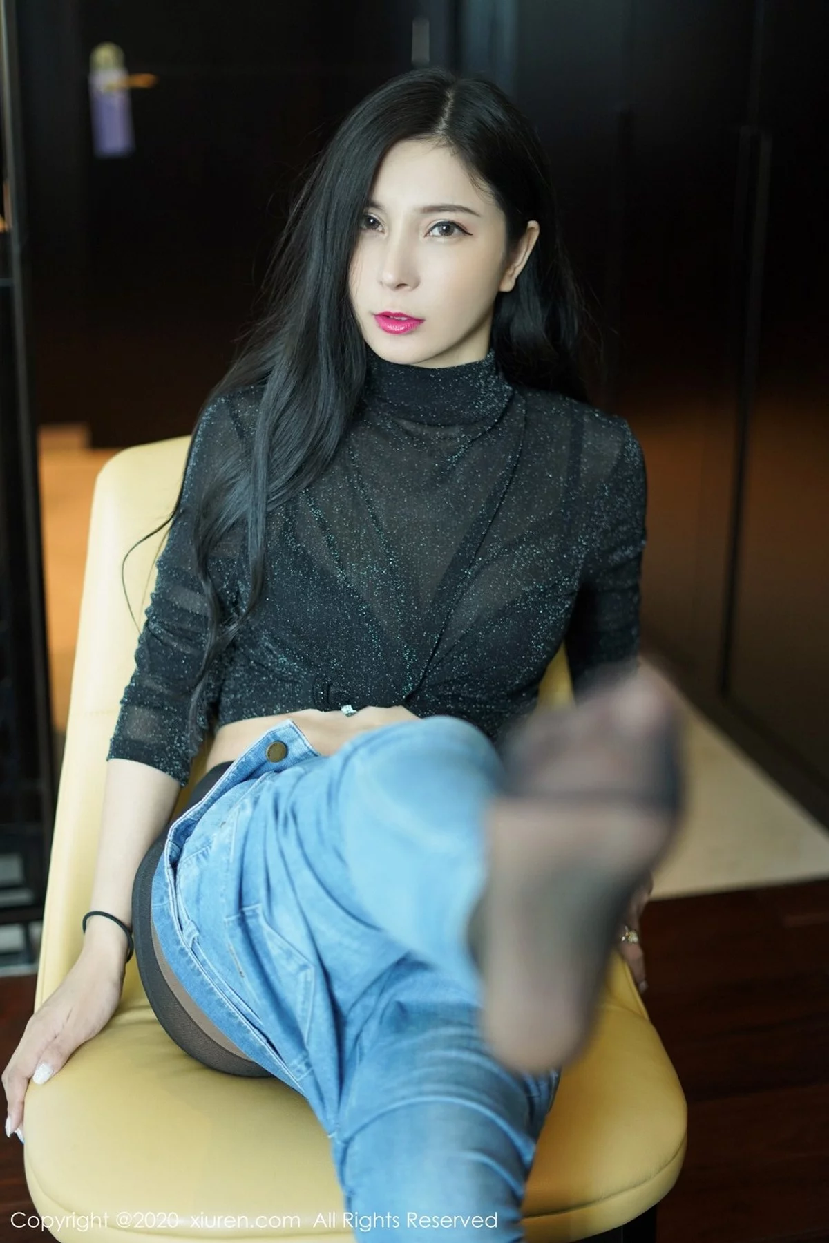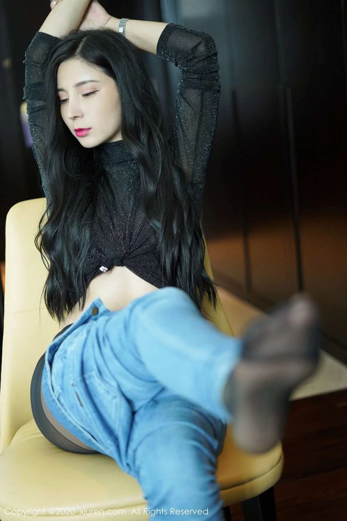 [XiuRen秀人网]No.2386 嫩模小蛮妖Yummy私房牛仔裤半脱露超薄黑丝裤袜秀翘臀诱惑写真67P