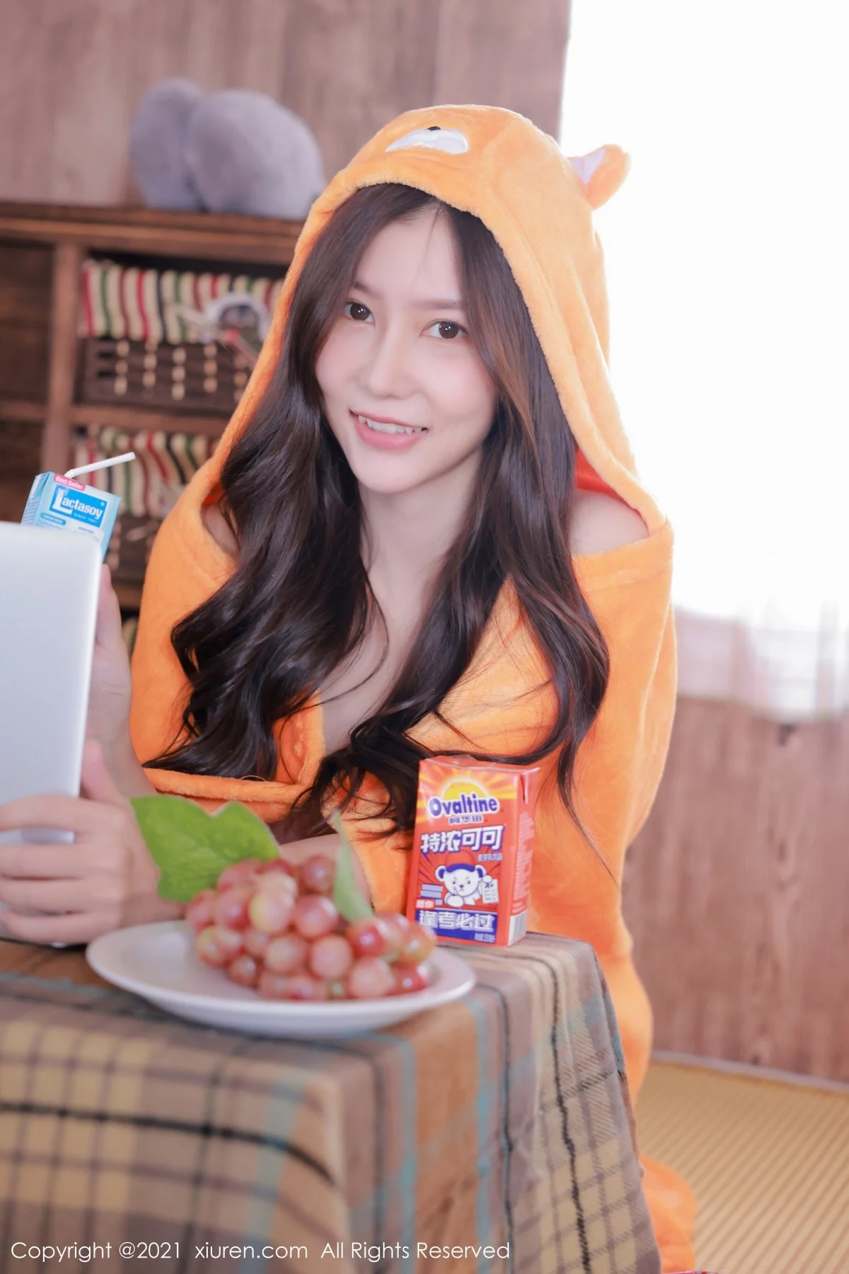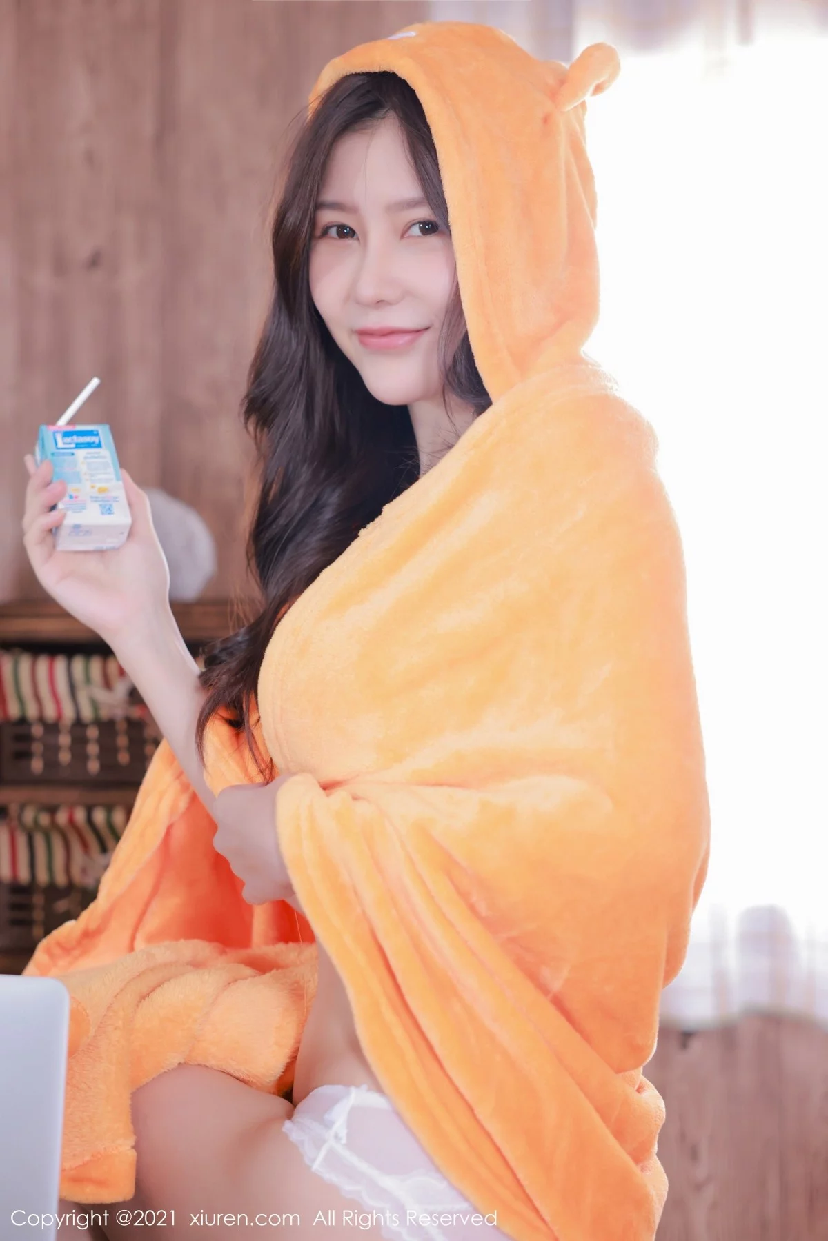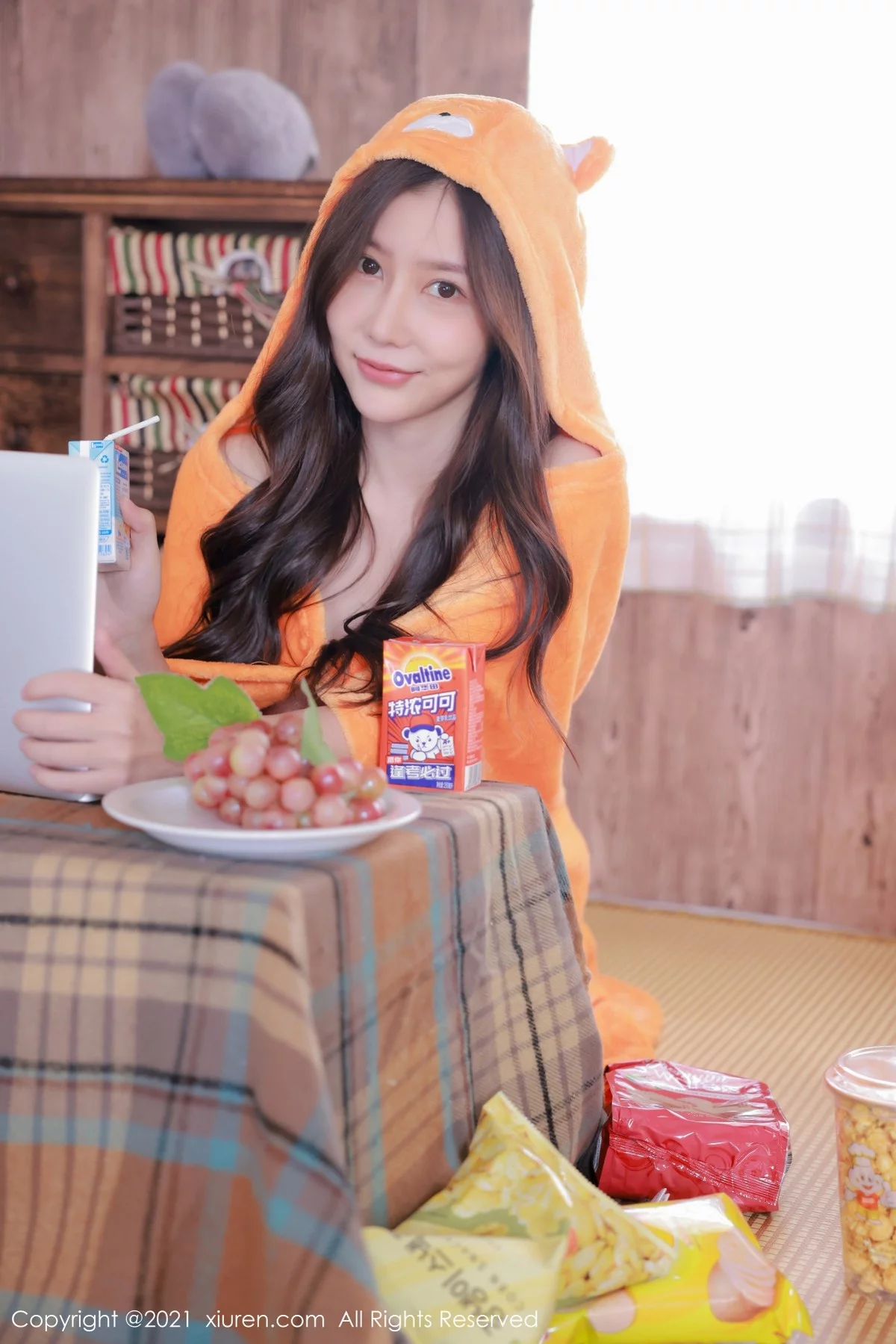 [XiuRen秀人网]No.4199 模特尹甜甜私房性感绒毛披风半脱露豪乳薯片遮点撩人诱惑写真49P