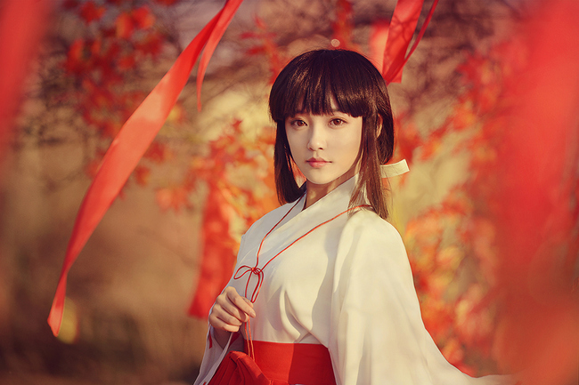 剑灵美女玩家暗蓝羽衣COS—靓丽秒杀灵芝