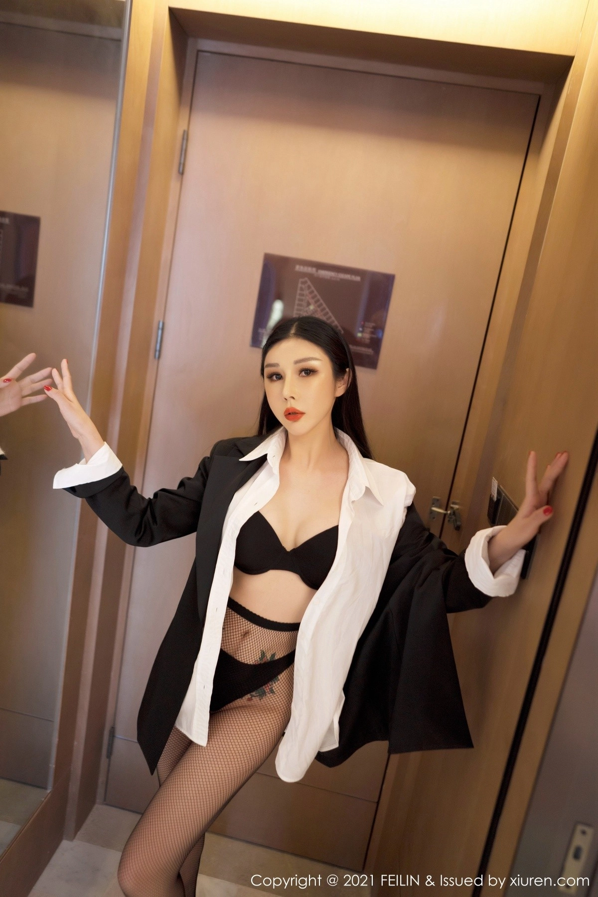 [FeiLin嗲囡囡]VOL.402 模特田冰冰职业装主题私房性感黑色内衣配黑丝完美诱惑写真43P