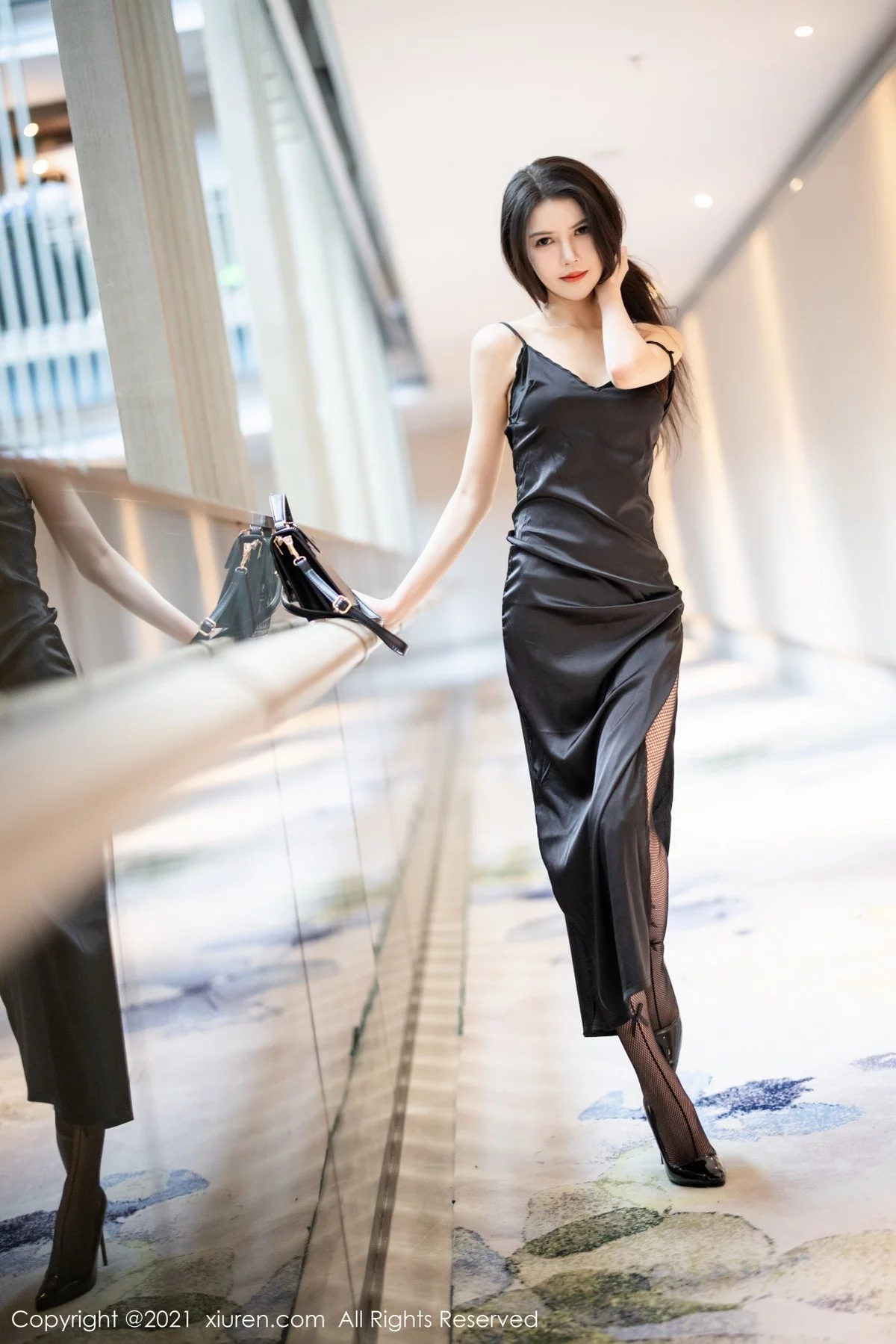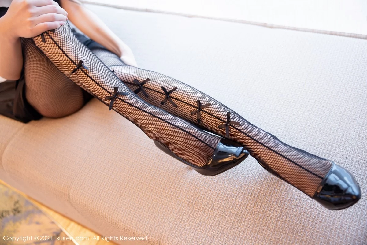 [XiuRen秀人网]No.4217 模特媛媛酱belle私房黑色吊裙配黑丝网袜半脱秀完美身材诱惑写真45P