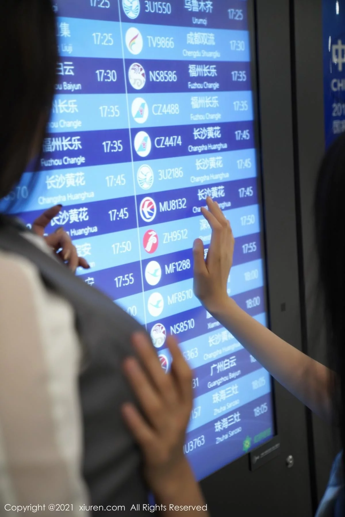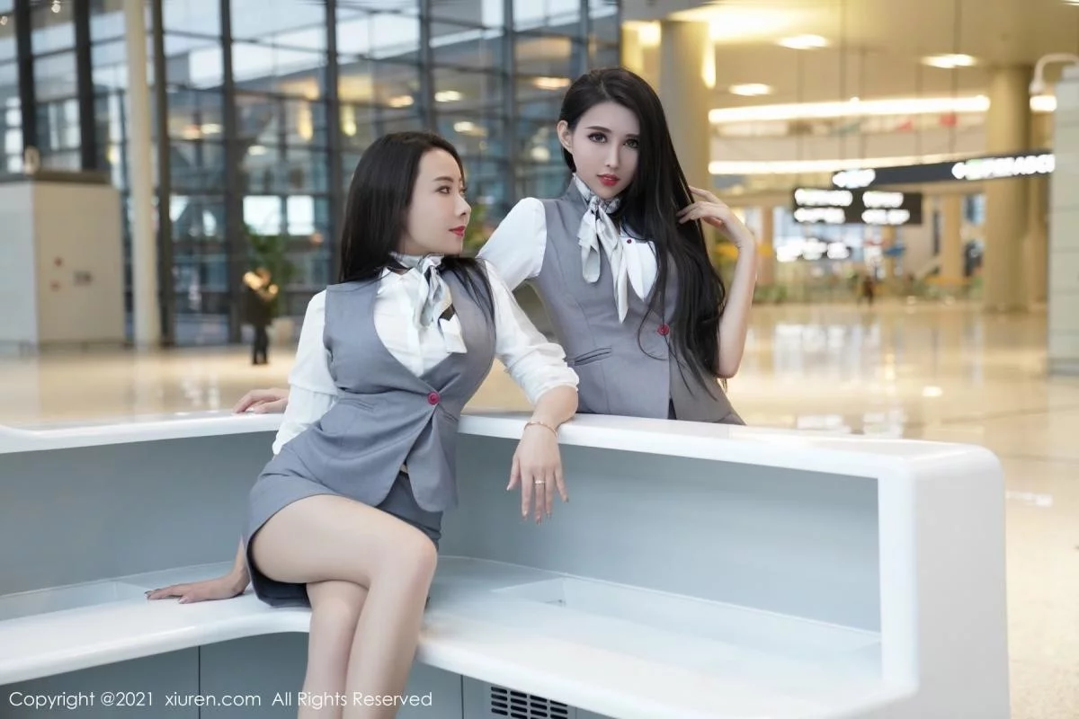 [XiuRen秀人网]No.3173 模特果儿Victoria&葛征私房空姐制服主题性感姐妹花撩人诱惑写真48P