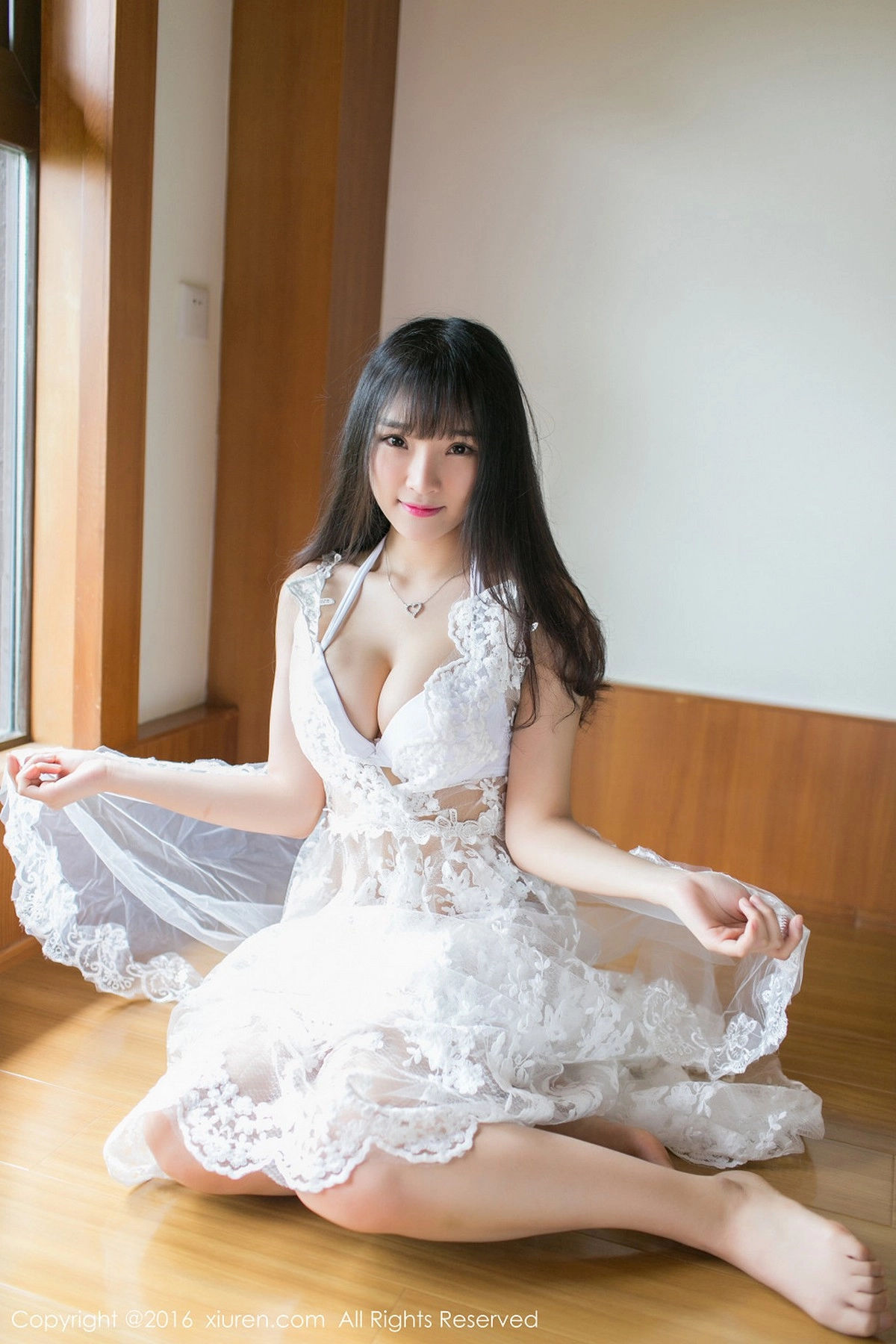 [XiuRen秀人网]No.530 嫩模王梓童Doirs白色蕾丝厨娘装白丝美腿完美诱惑写真50P