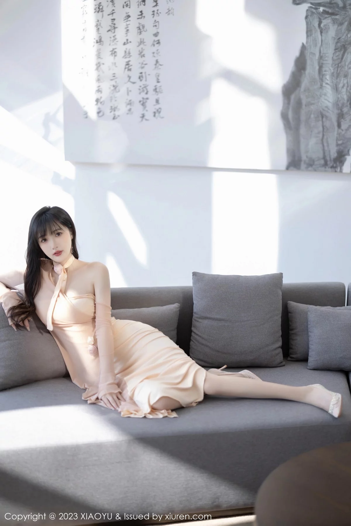 [XiaoYu画语界]Vol.1049 模特林星阑浅色连衣裙配超薄肉丝+红色服饰配无内黑丝诱惑写真85P