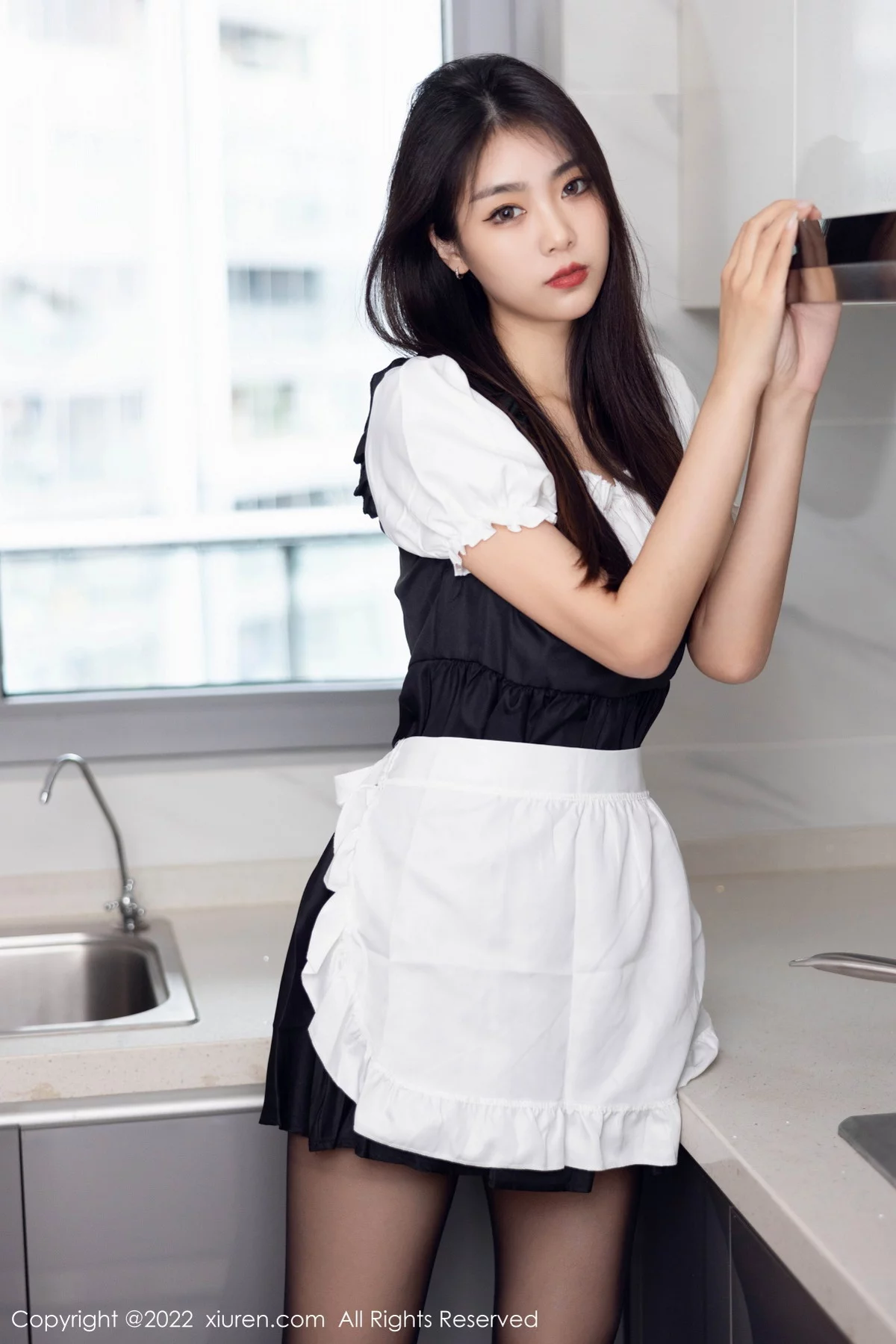 [XiuRen秀人网]No.5706 模特可乐Vicky黑白拼色厨娘服饰配超薄黑丝秀苗条身材性感写真60P