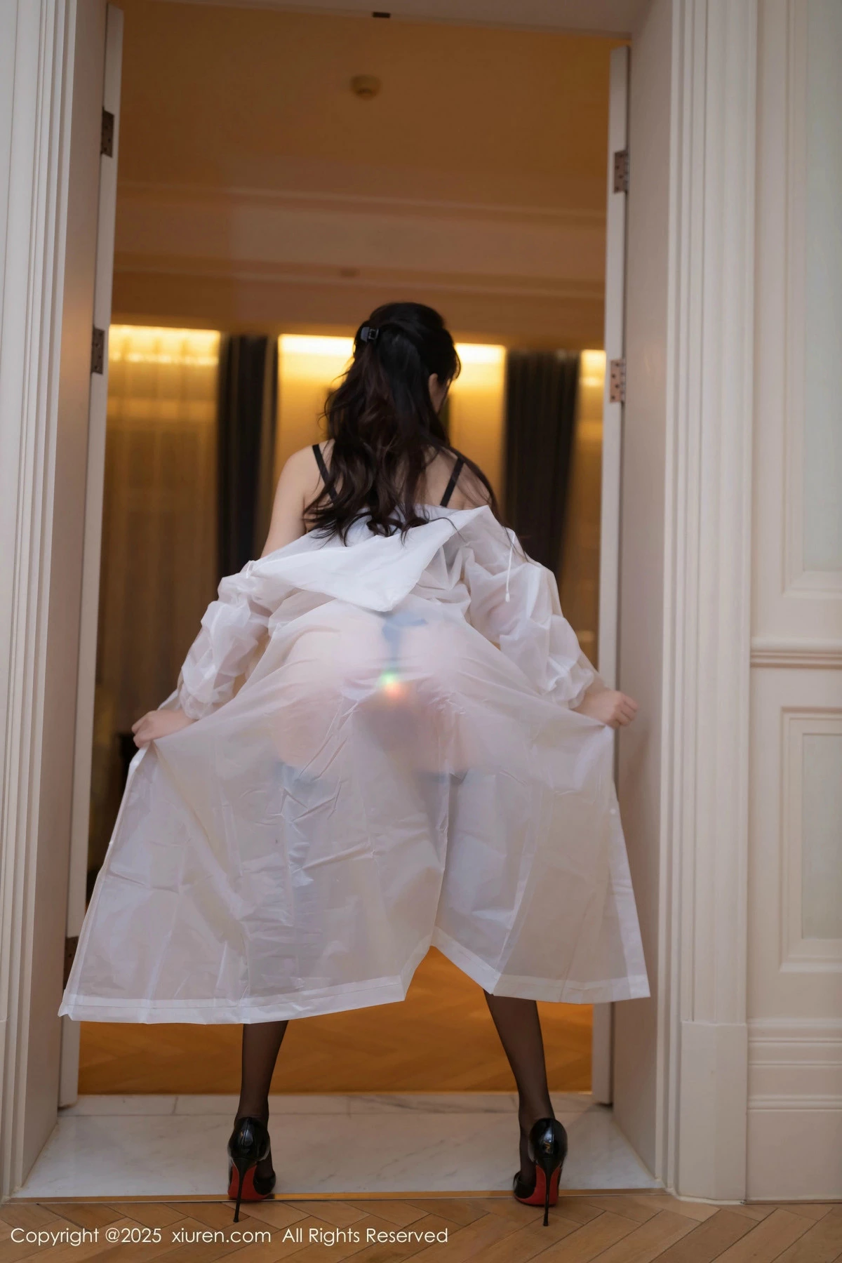 [XiuRen秀人网]No.9700 模特陆萱萱白色雨衣露性感黑色内衣配黑丝袜秀曼妙身姿诱惑写真80P