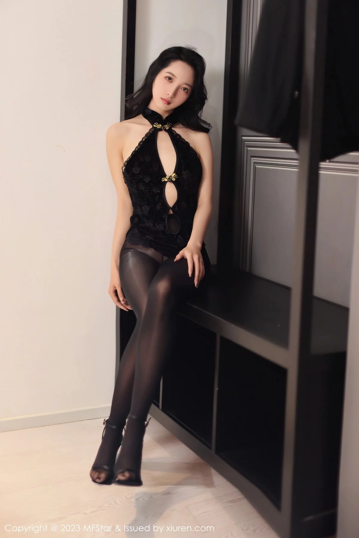 [MFStar模范学院]Vol.599 新人模特茜茜Kimi黑色开胸服饰配超薄黑丝秀完美身材诱惑写真61P