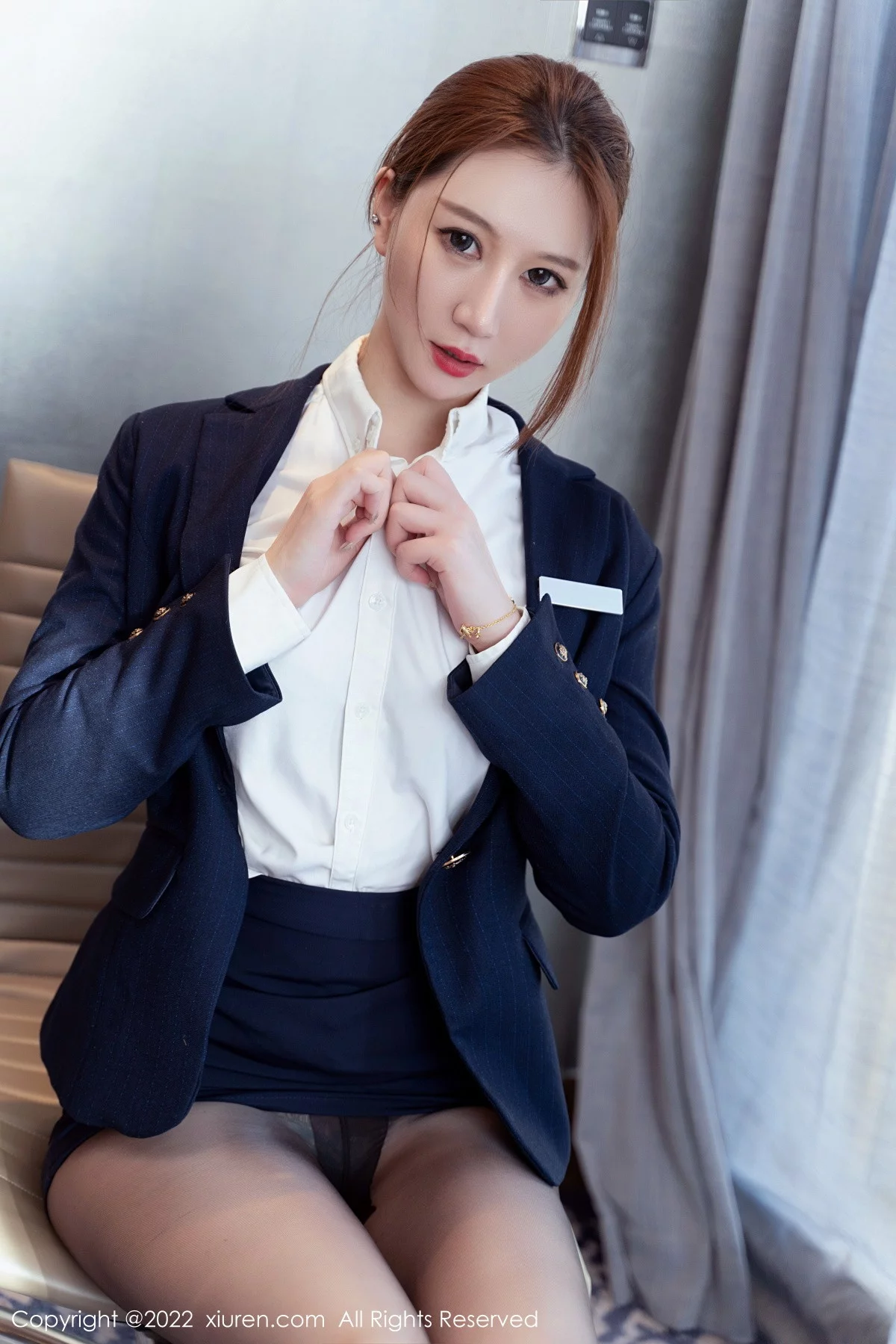 [XiuRen秀人网]No.5918 模特顾乔楠Cora脱蓝色制服露性感内衣配超薄无内黑丝诱惑写真72P