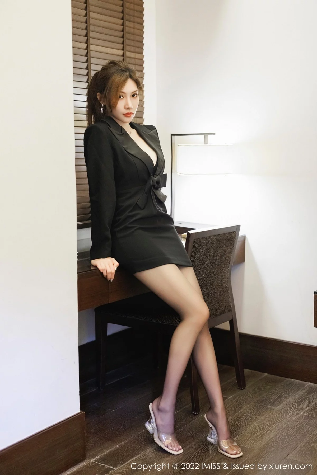 [IMISS爱蜜社]Vol.695 女神小狐狸Kathryn性感黑色职业装半脱露黑色内衣迷人诱惑写真54P