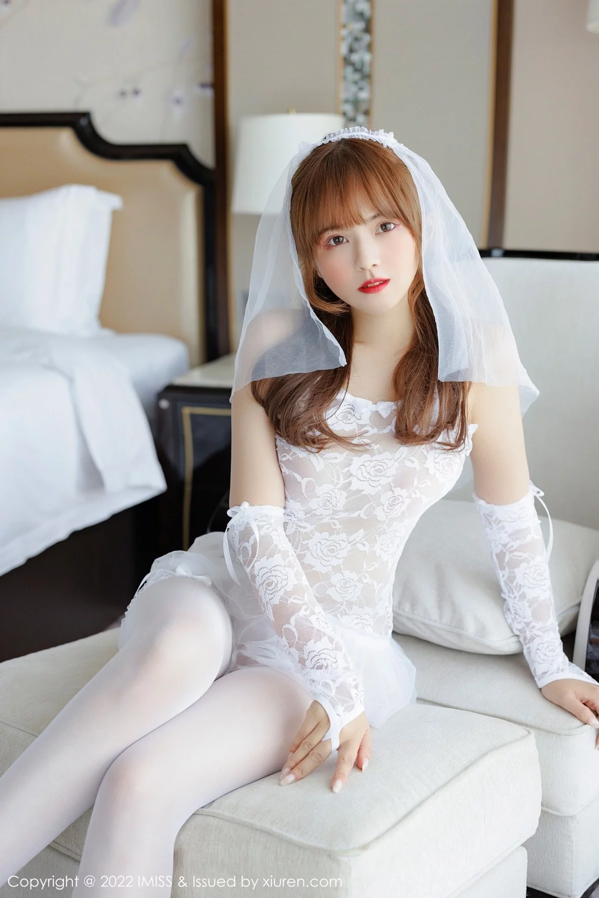 [IMISS爱蜜社]Vol.674 模特张思允Nice性感白色蕾丝婚纱配白丝袜秀完美身材诱惑写真59P