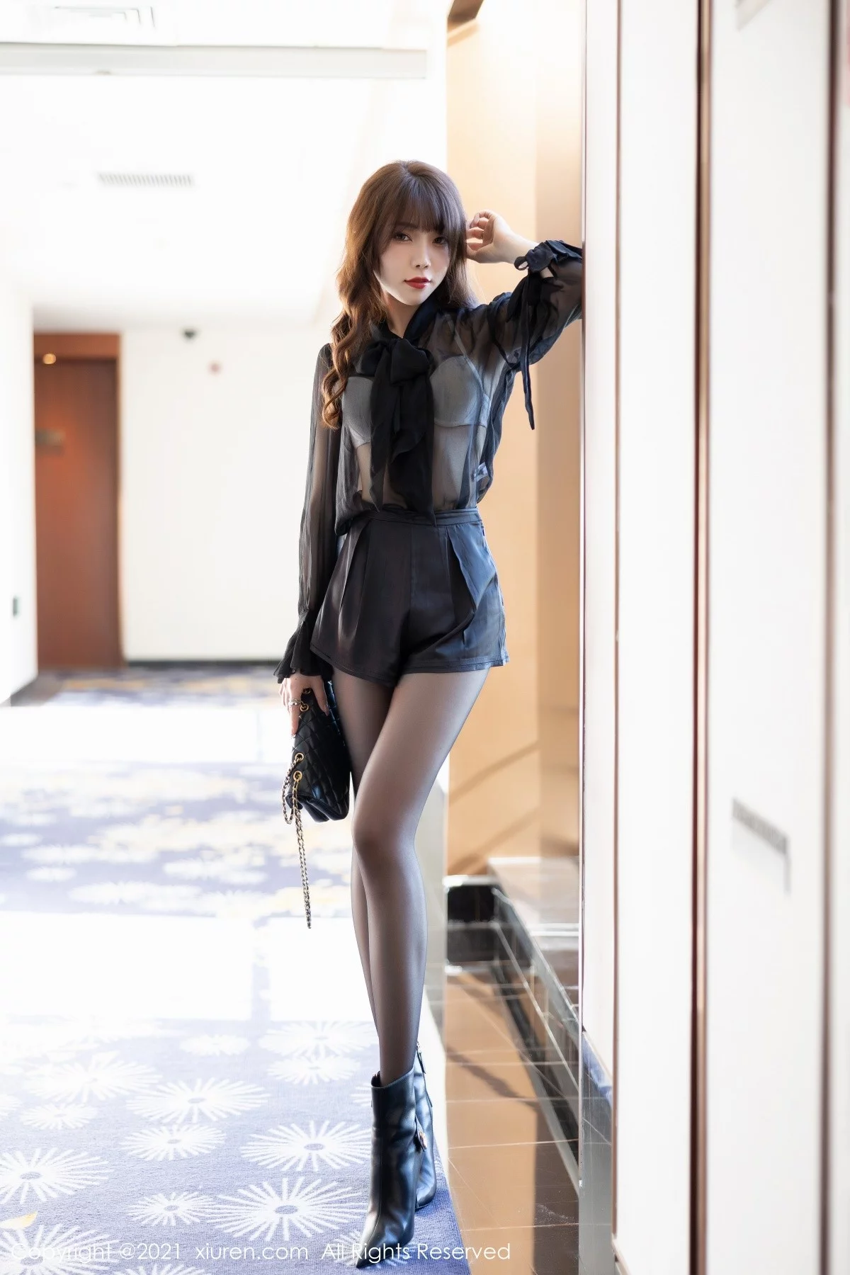 [XiuRen秀人网]No.4114 女神芝芝Booty深圳旅拍魅惑黑色服饰配黑丝裤袜秀翘臀诱惑写真97P