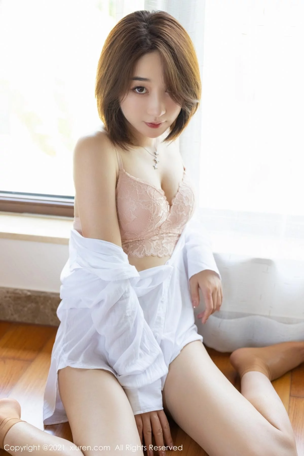 [XiuRen秀人网]No.3193 嫩模九月生私房性感白衬衣半脱露粉色内衣秀完美身材诱惑写真44P