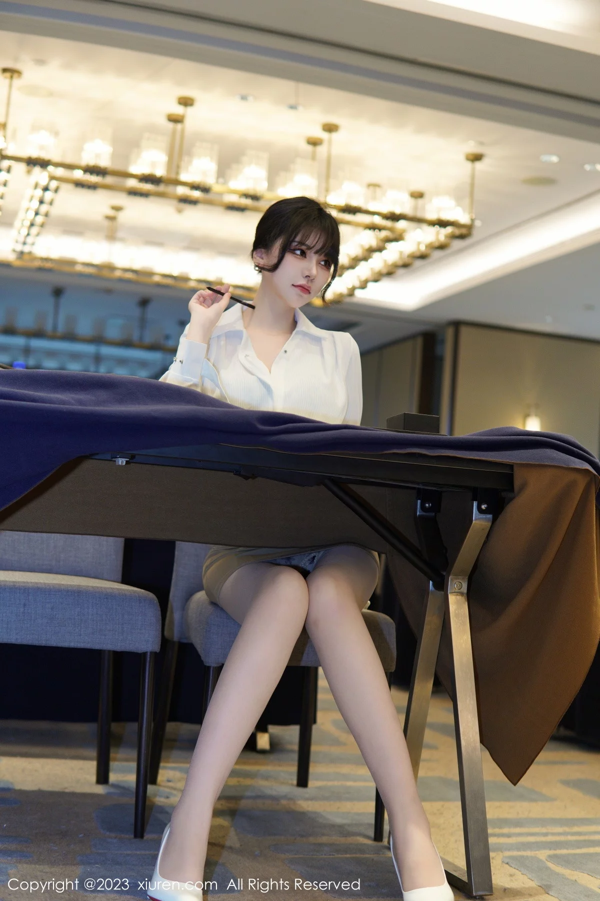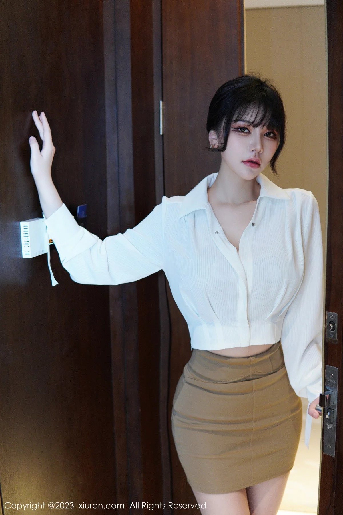 [XiuRen秀人网]No.6111 模特桃桃子 性感白T配黄色短裙露蕾丝内衣配开档肉丝诱惑写真86P