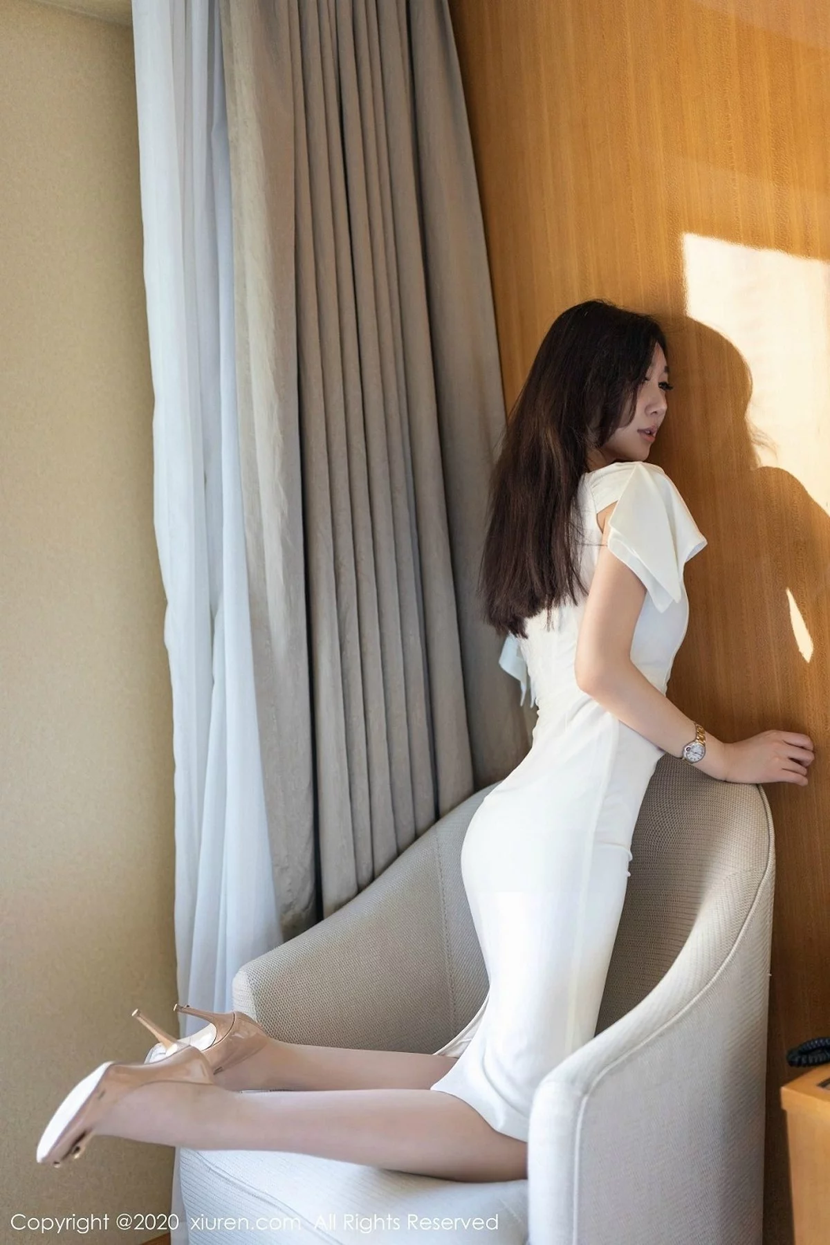 [XiuRen秀人网]No.2097 嫩模伊思思niko白色典雅气质长裙配肉丝袜秀美腿玉足性感写真40P