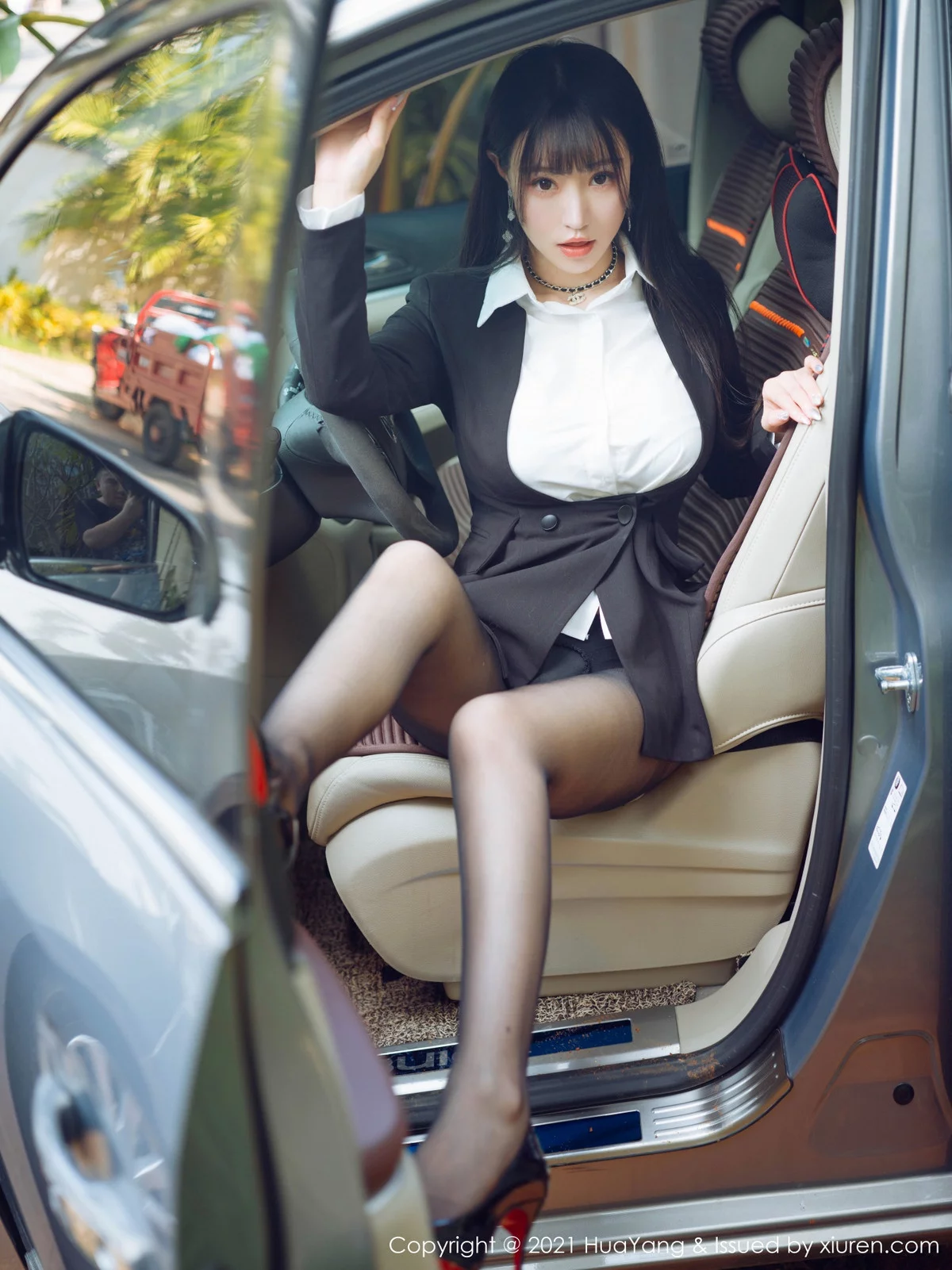 [HuaYang花漾]Vol.383 女神朱可儿Flower三亚旅拍车拍系列主题半脱露豪乳诱惑写真73P