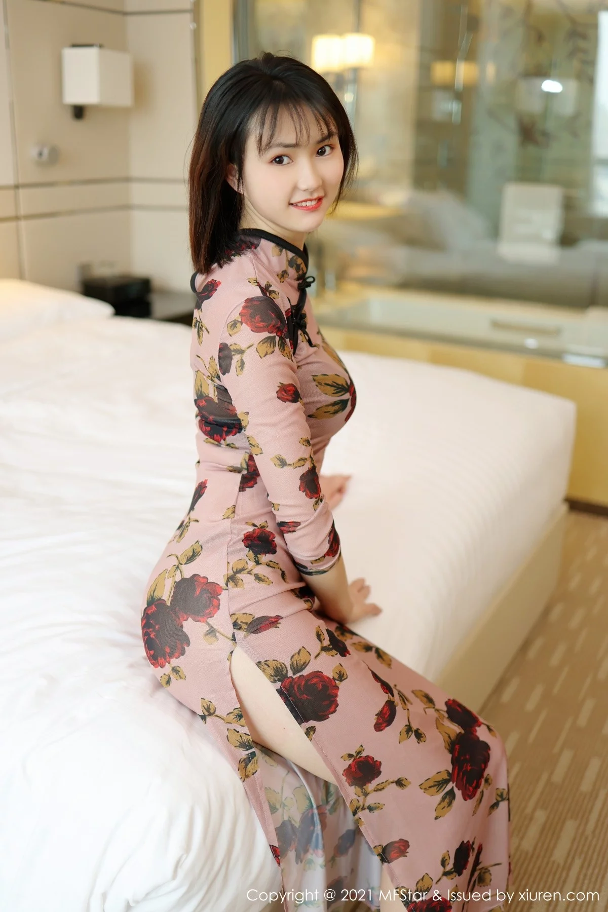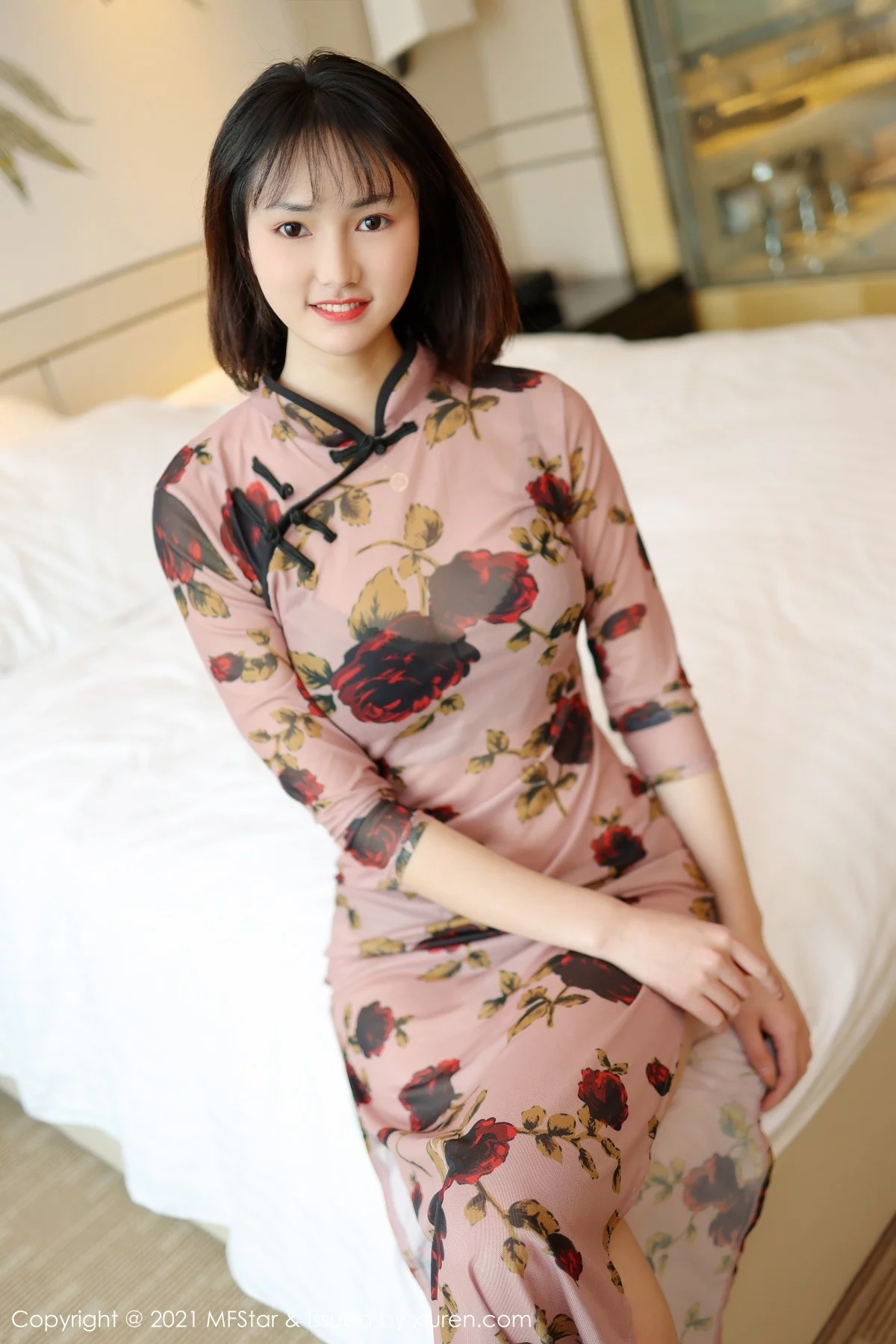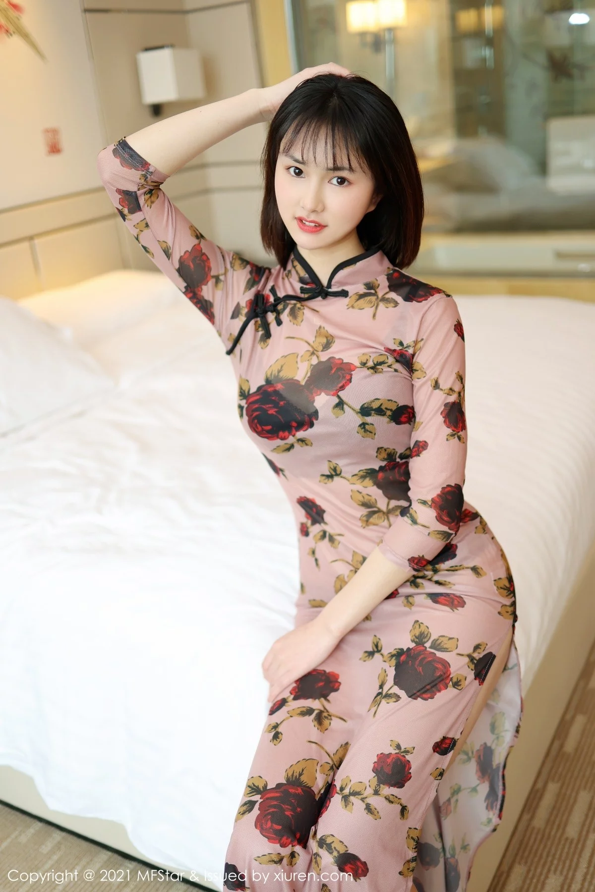 [MFStar模范学院]Vol.483 嫩模墨韩私房古典旗袍半撩露黑色丁字裤秀翘臀诱惑写真45P