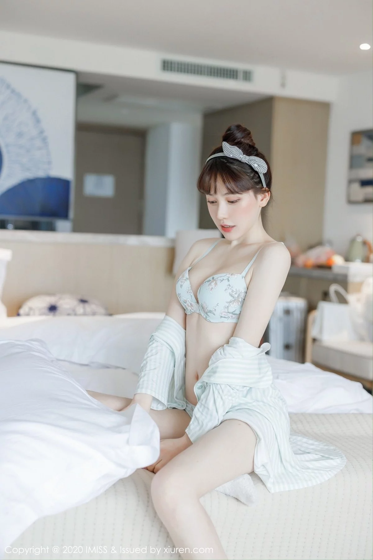 [IMISS爱蜜社]Vol.481 女神Lynn刘奕宁私房床上性感衬衣半脱秀完美身材诱惑写真24P