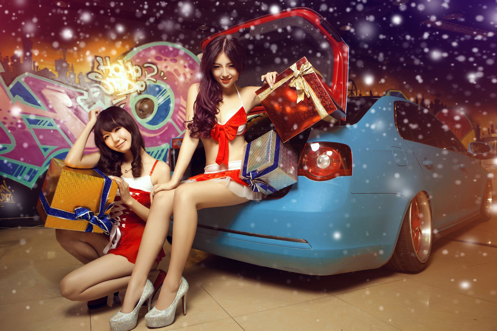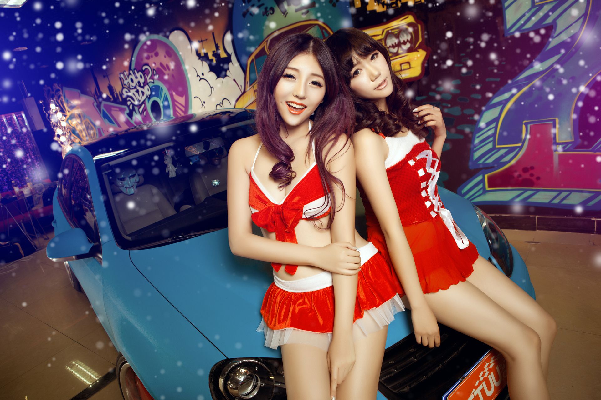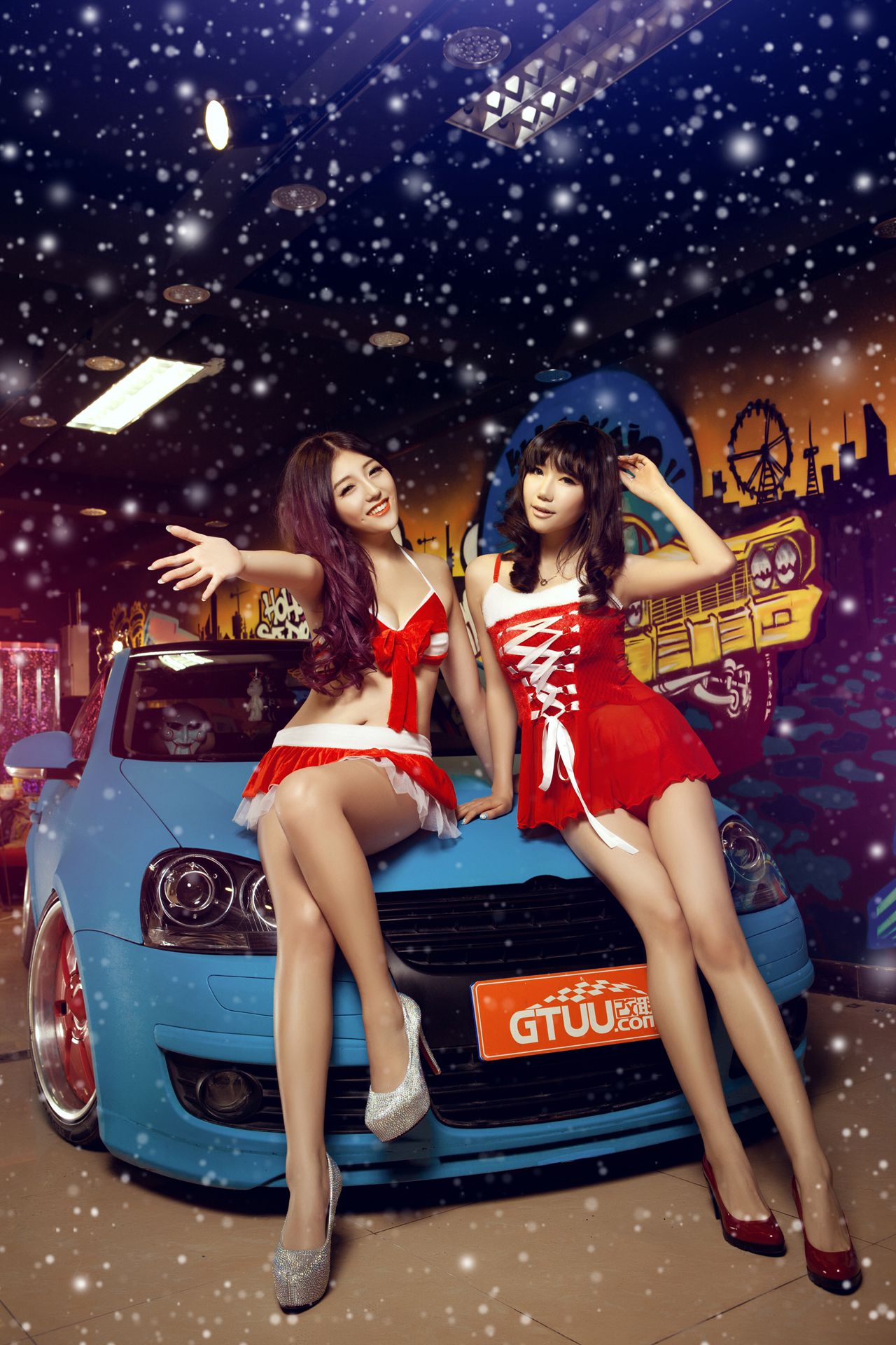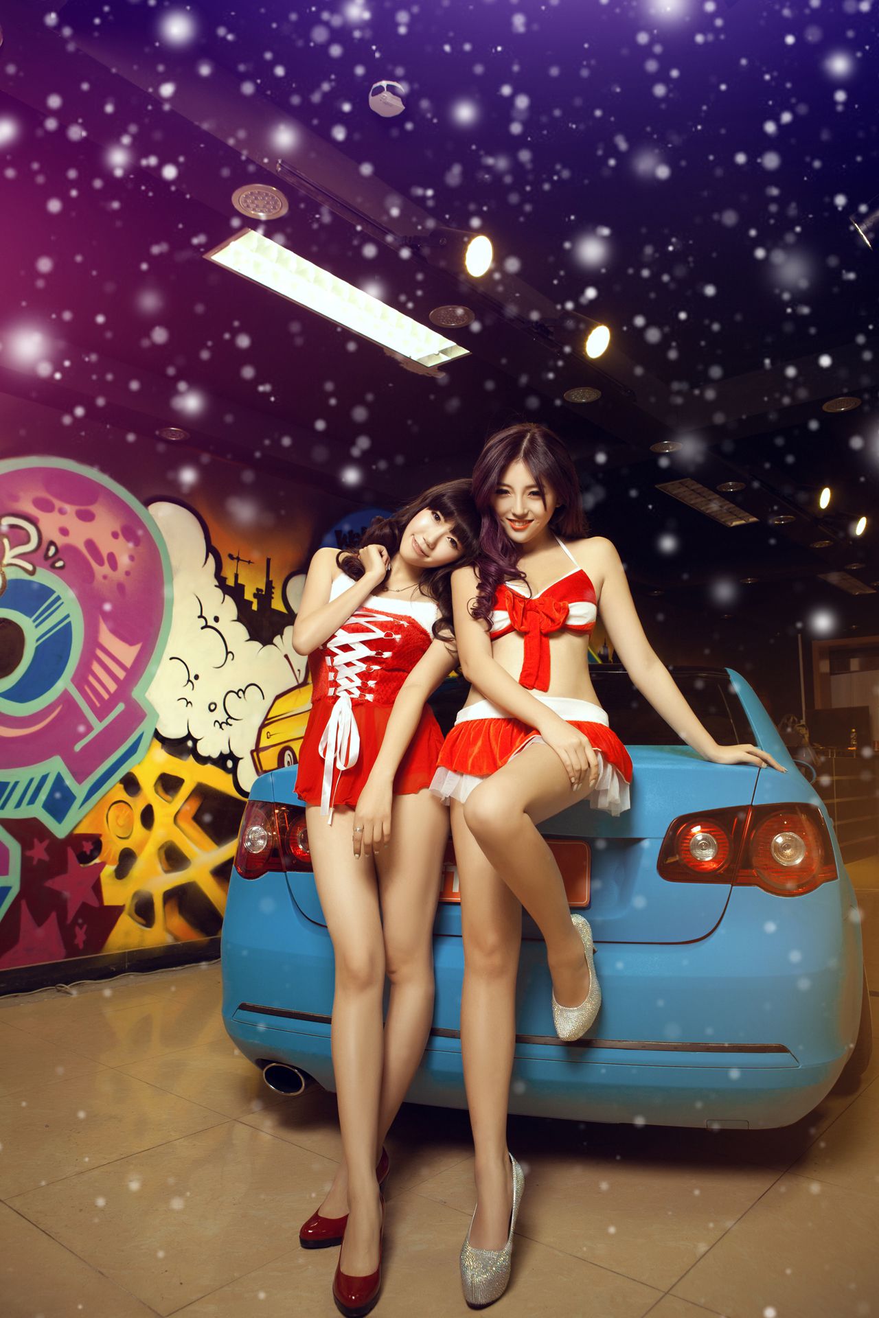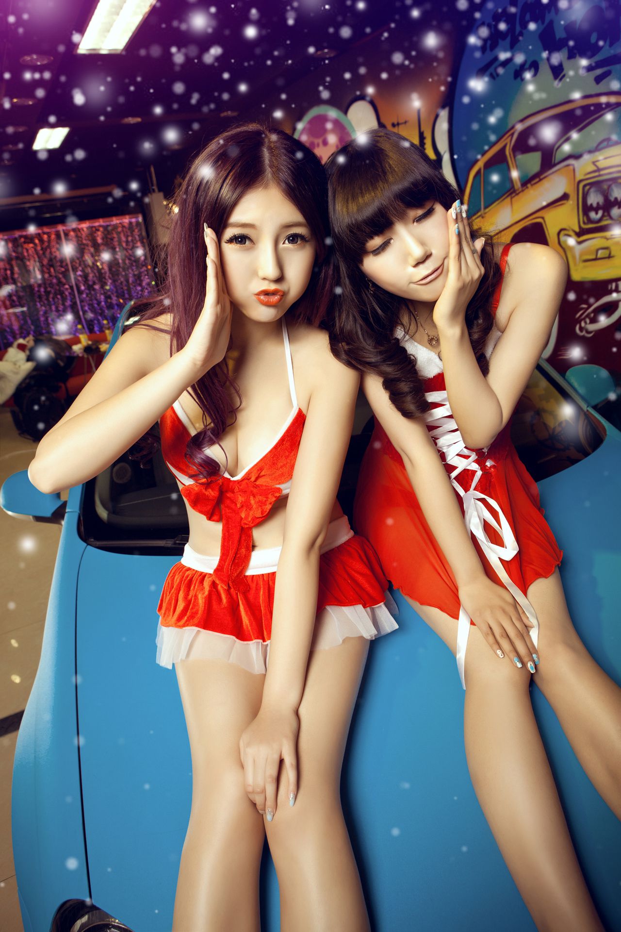甜美可爱姐妹花 – 圣诞香车魅影图片合集