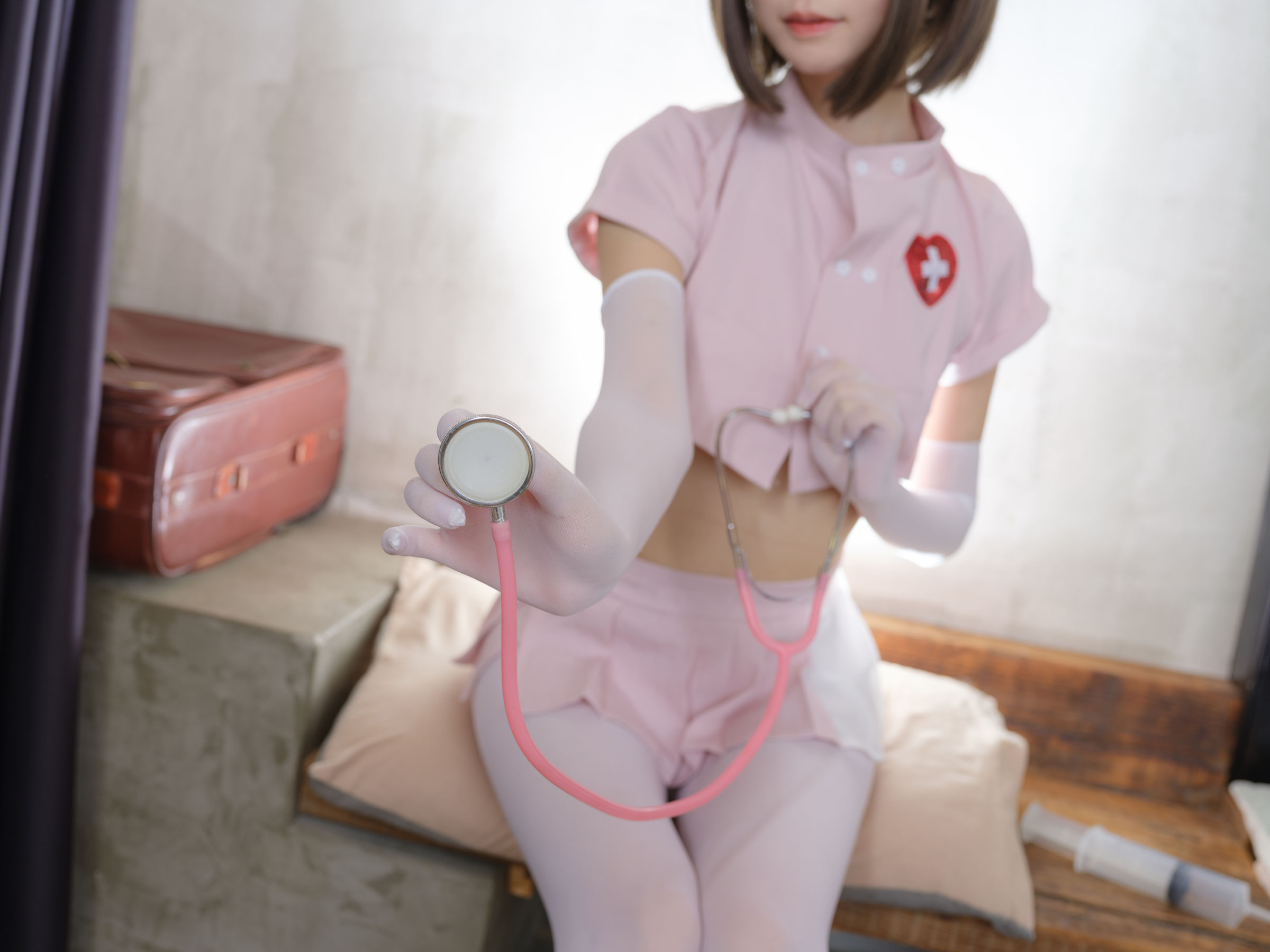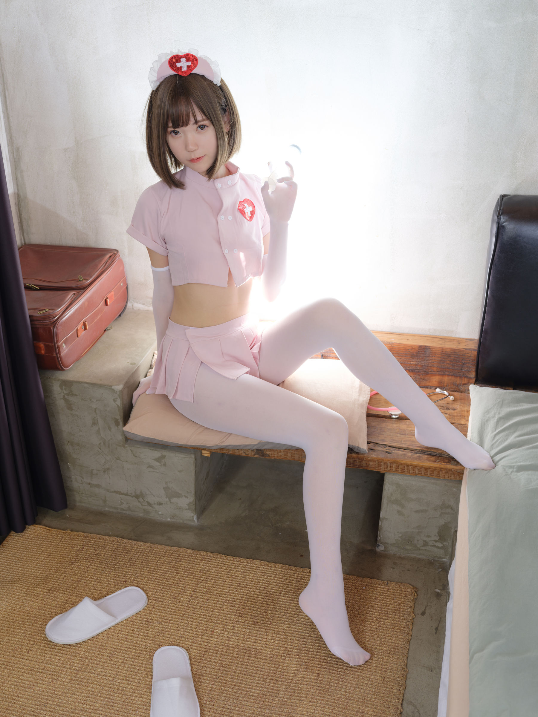[福利COS] Sameki – 粉色皮衣女仆