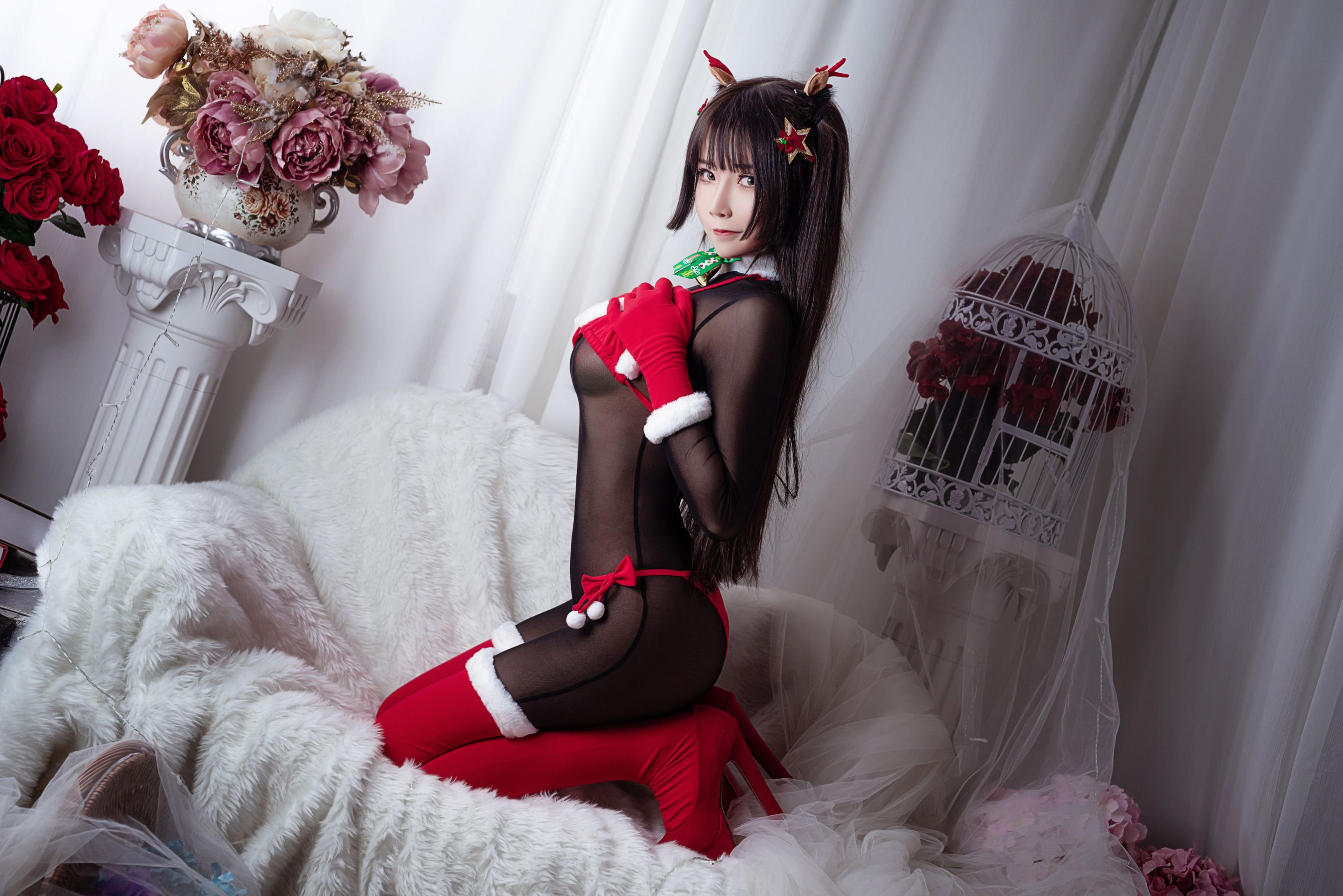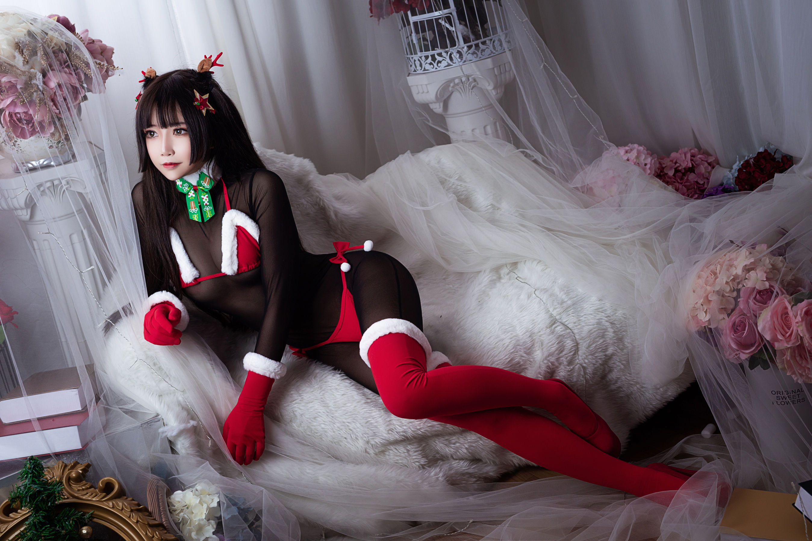 二次元妹子抱走莫子aa 连体黑丝圣诞比基尼